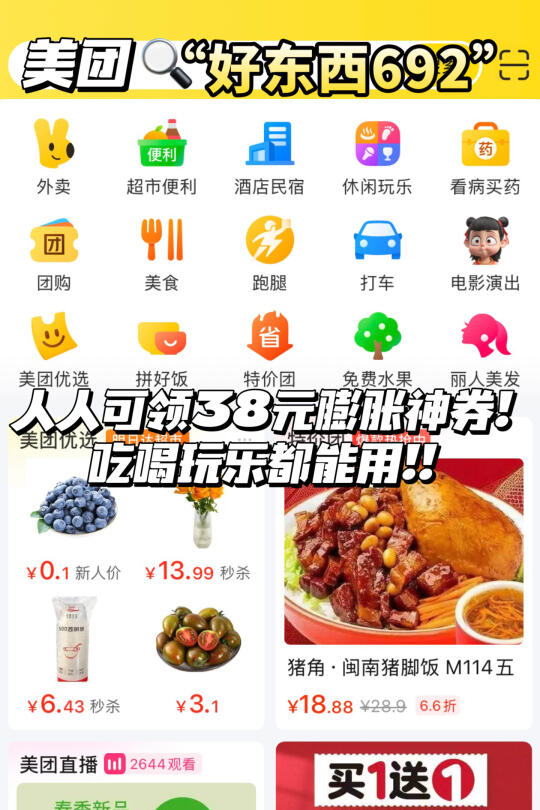 上美团搜“好东西692”,参与美团的三八妇女节活动