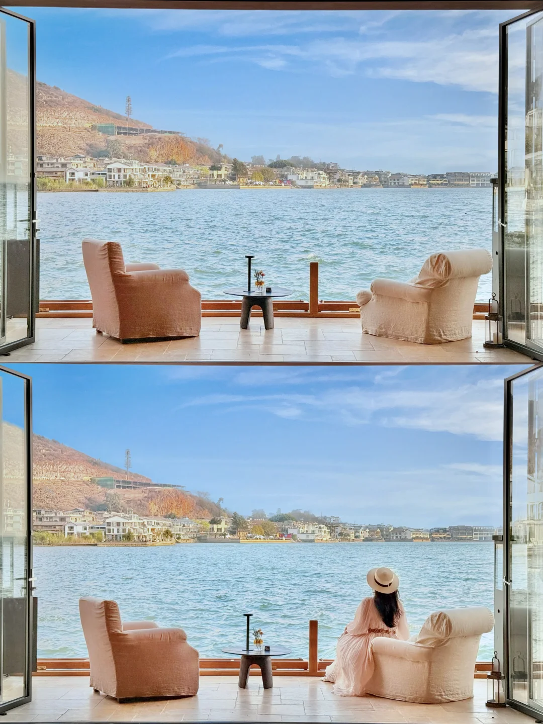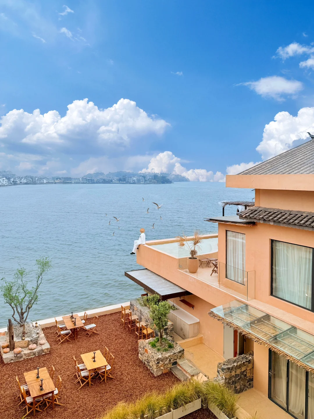 当洱海把光捏成金线 推开窗便撞碎一池波光 洱海便像抖开缀满星子的蓝色绸缎 波光与海浪之间浮着莫奈的颜料盘 每一帧都像被海鸥衔起的诗 . 每个转角都是相机的情人 光影在廊柱上刺绣 风掀起纱帘 连呼吸都成了唯美的风 泡在Tiffany蓝的水波里 看苍山给洱海别上雪绒花胸针 直到暮色把浪花染成梵高的鸢尾蓝 . 当每一粒光都成为你的画笔 连影子都会嫉妒这份被洱海偏爱的浪漫 .