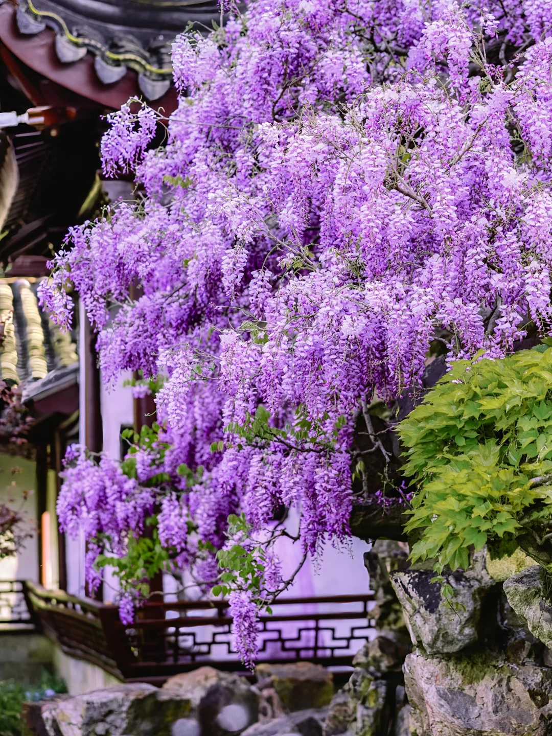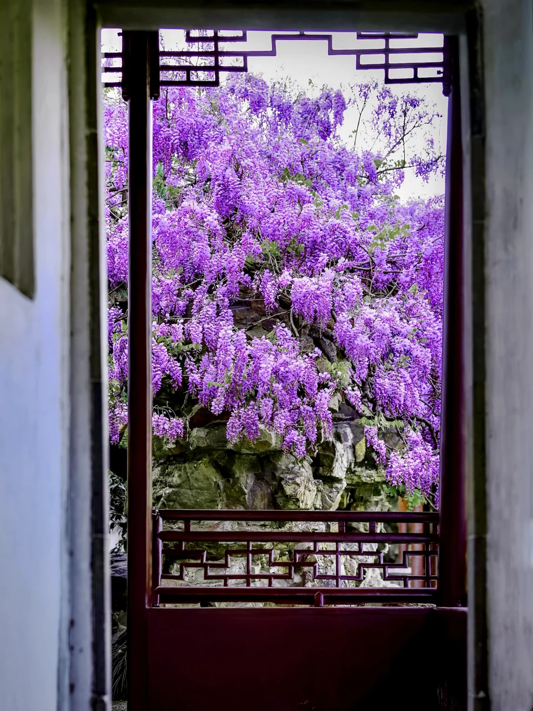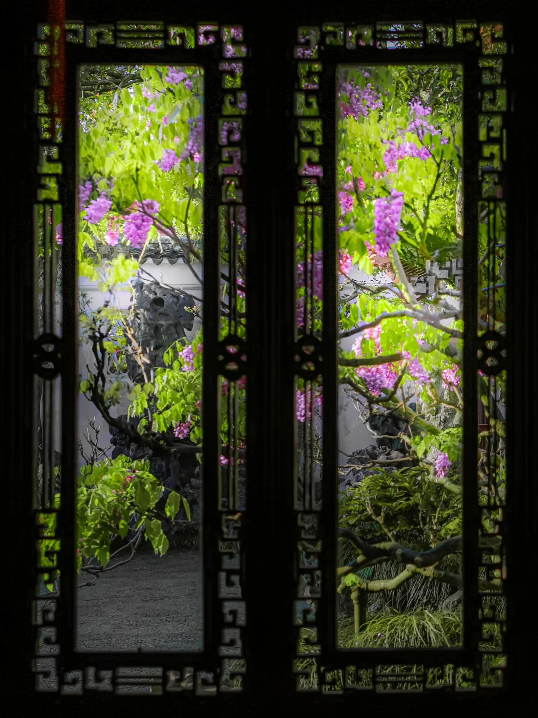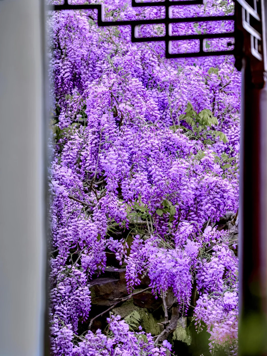 🌿紫藤垂帘叩花窗,一瀑春色枕姑苏🪻 谁将宋锦裁作瀑,悬于粉墙黛瓦间? 网师园的紫藤🪻 是江南四月写给花窗的情书💜 百岁的藤蔓攀过彩霞池畔假山⛰️ 深深浅浅的紫🪻化作流动的云☁️ 倒映碧水,与雕窗共舞🪟 这便是苏州园林醉美的紫藤花窗🖼️ 一帘幽梦坠入粉墙⚪️ 千年风雅皆在此间流转✨ . 📍:网师园 🪻网师园有2️⃣处紫藤💜 1️⃣处在彩霞池畔🌈黄石假山🏞️ 1️⃣处在殿春簃主殿🏯南侧 📸:2024.04.01 .