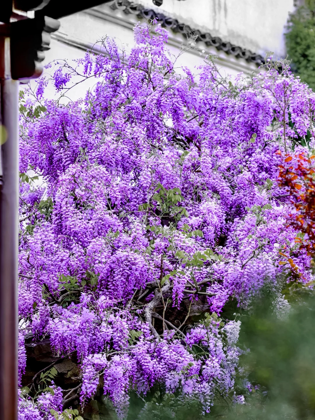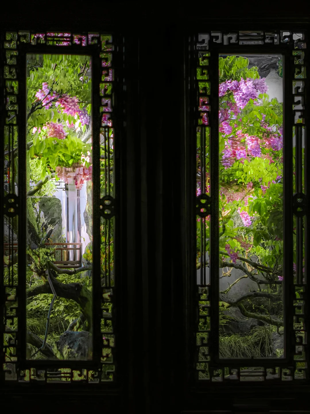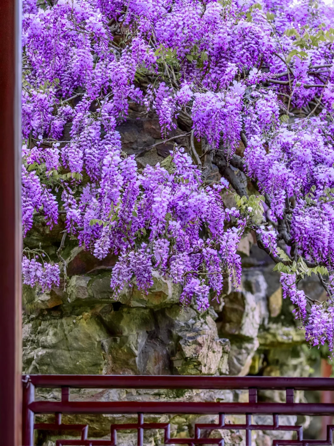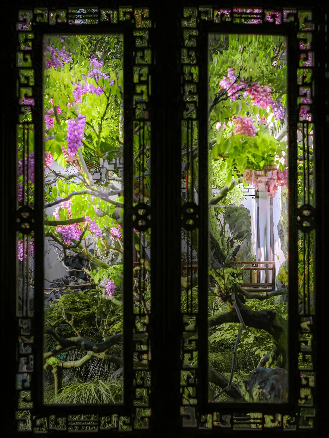 🌿紫藤垂帘叩花窗,一瀑春色枕姑苏🪻 谁将宋锦裁作瀑,悬于粉墙黛瓦间? 网师园的紫藤🪻 是江南四月写给花窗的情书💜 百岁的藤蔓攀过彩霞池畔假山⛰️ 深深浅浅的紫🪻化作流动的云☁️ 倒映碧水,与雕窗共舞🪟 这便是苏州园林醉美的紫藤花窗🖼️ 一帘幽梦坠入粉墙⚪️ 千年风雅皆在此间流转✨ . 📍:网师园 🪻网师园有2️⃣处紫藤💜 1️⃣处在彩霞池畔🌈黄石假山🏞️ 1️⃣处在殿春簃主殿🏯南侧 📸:2024.04.01 .