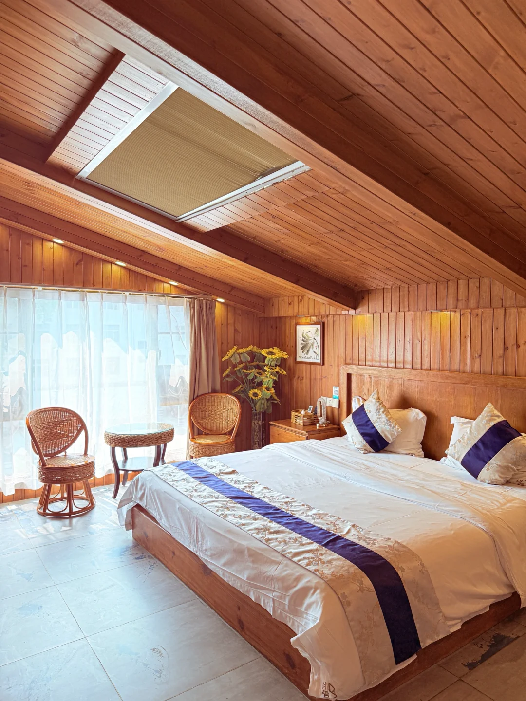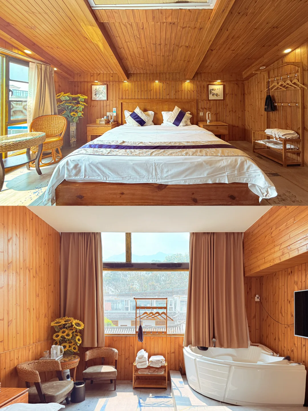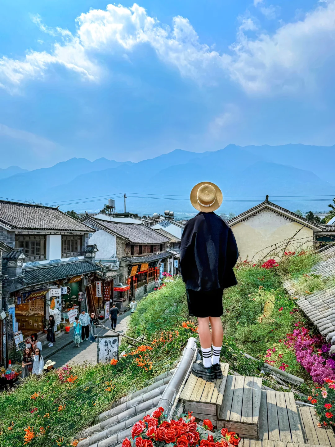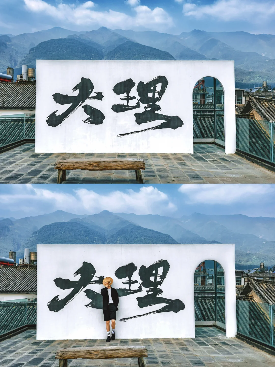 ✨ 机位亮点:二楼的瓦片露台正对苍山十九峰!背景是层层叠叠的青瓦民居与云雾缭绕的苍山,仿佛穿越《去有风的地方》~