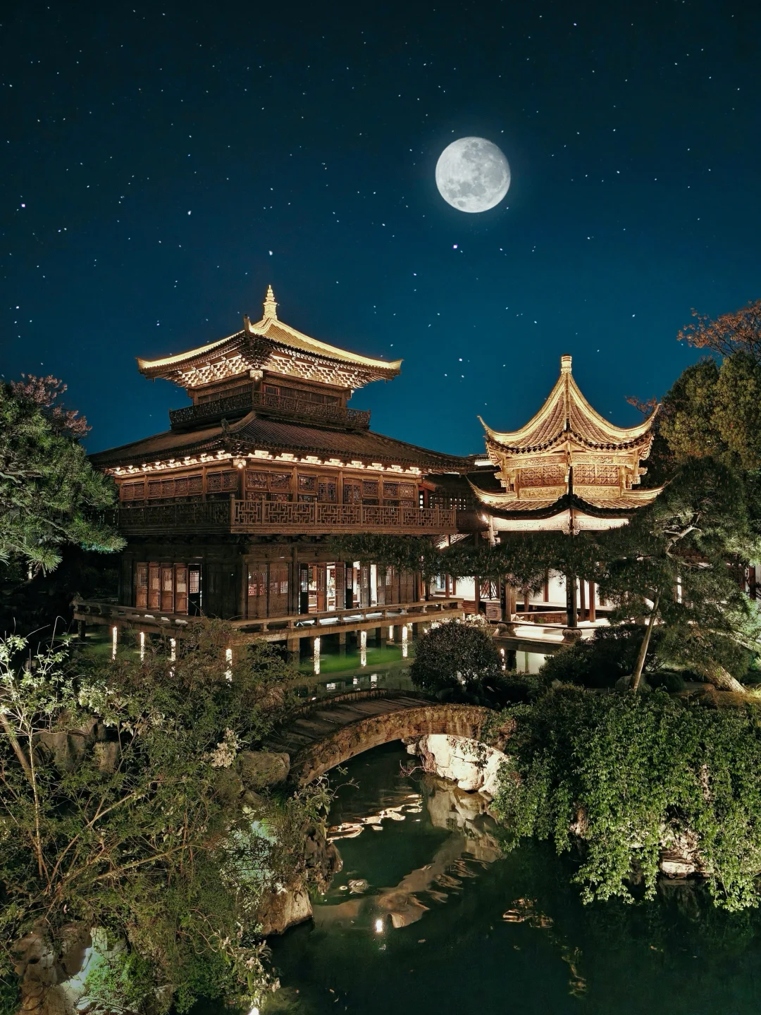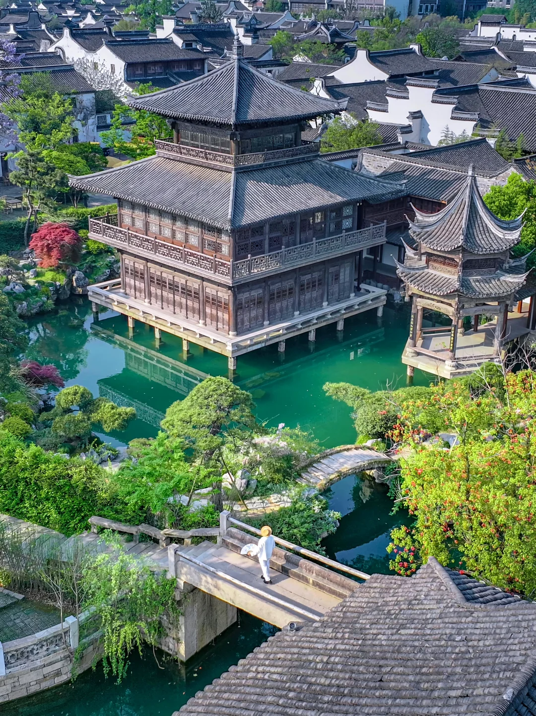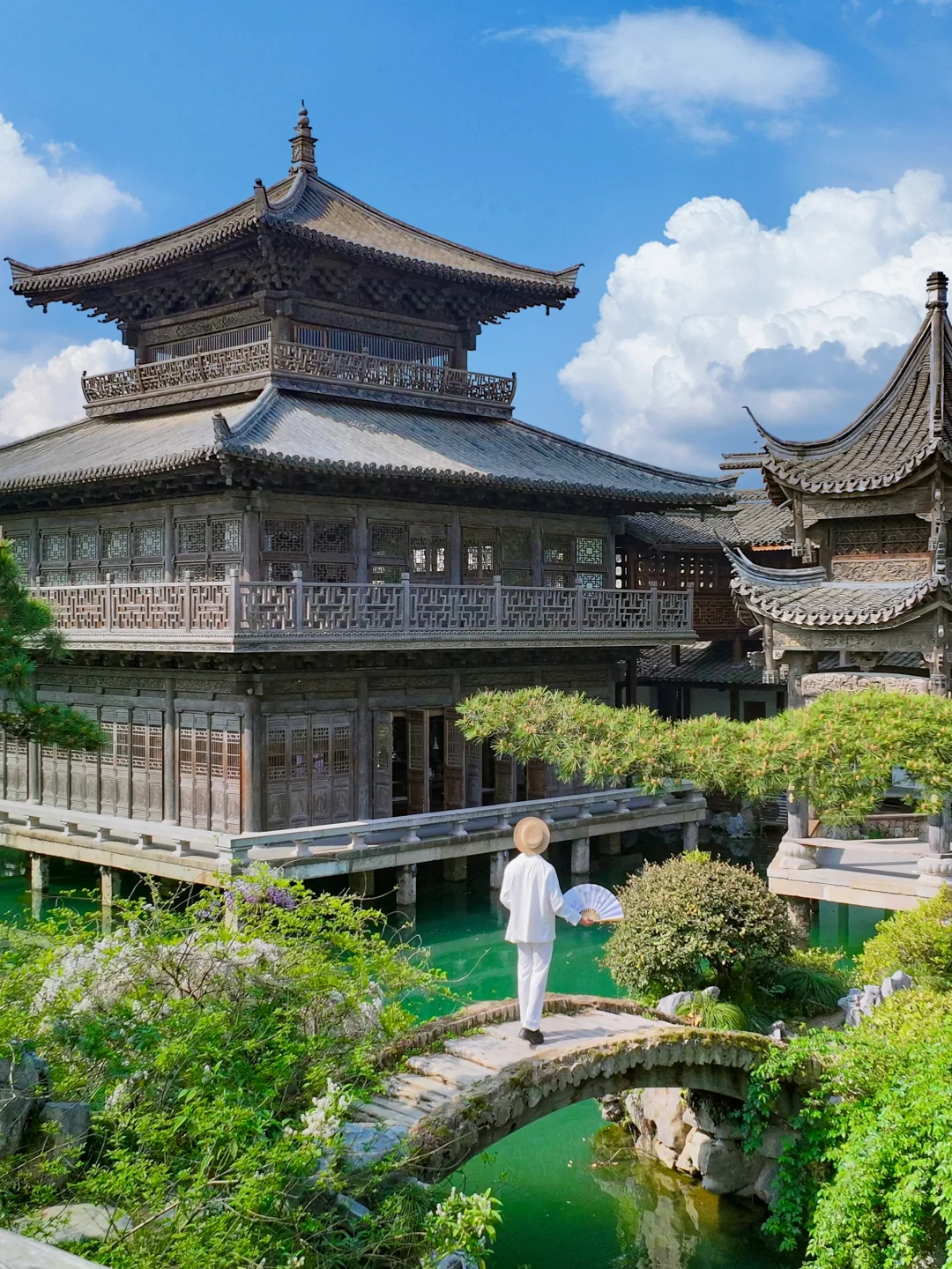 1️⃣潄芳禅园:宋风雾森仙阁!站小桥拍水中倒影,汉服+油纸伞=《清平乐》剧照直出
