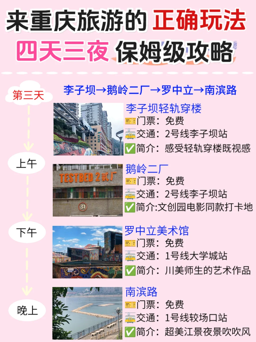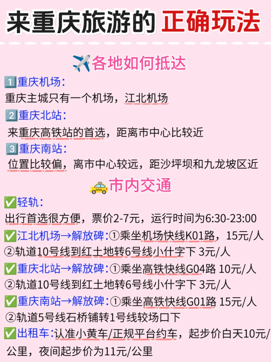 🚗出行:出行首选轻轨,各个景点直达。运营时间:6:30-23:00,票价:2-7元。