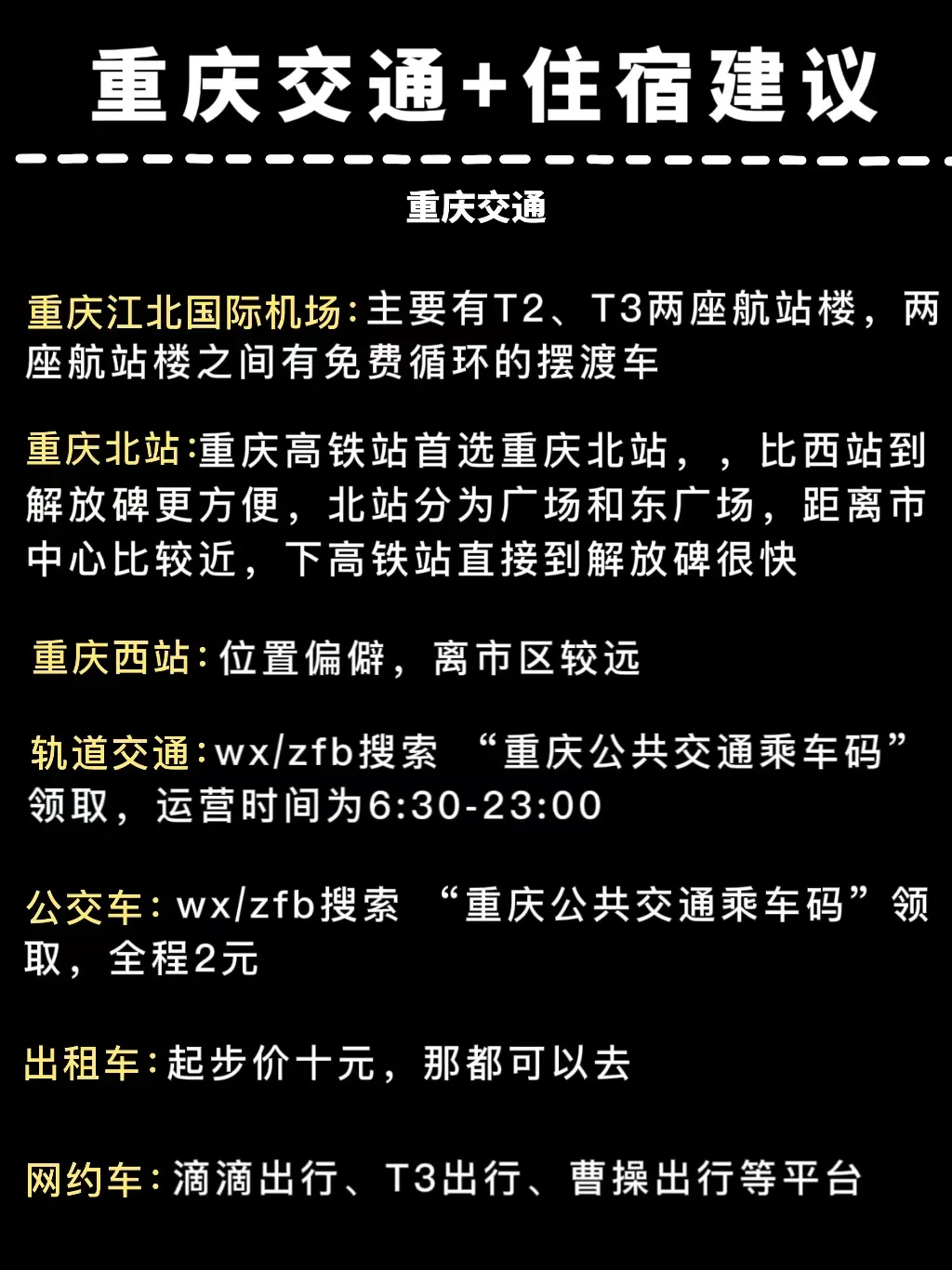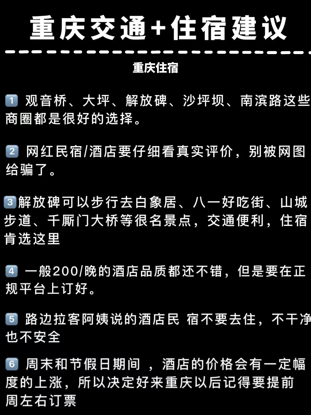 1️⃣解放碑:来渝推荐住解放碑附近,交通🚄便利,周围景点众多,附近的景区基本步行都能到。美食🍜选择也多