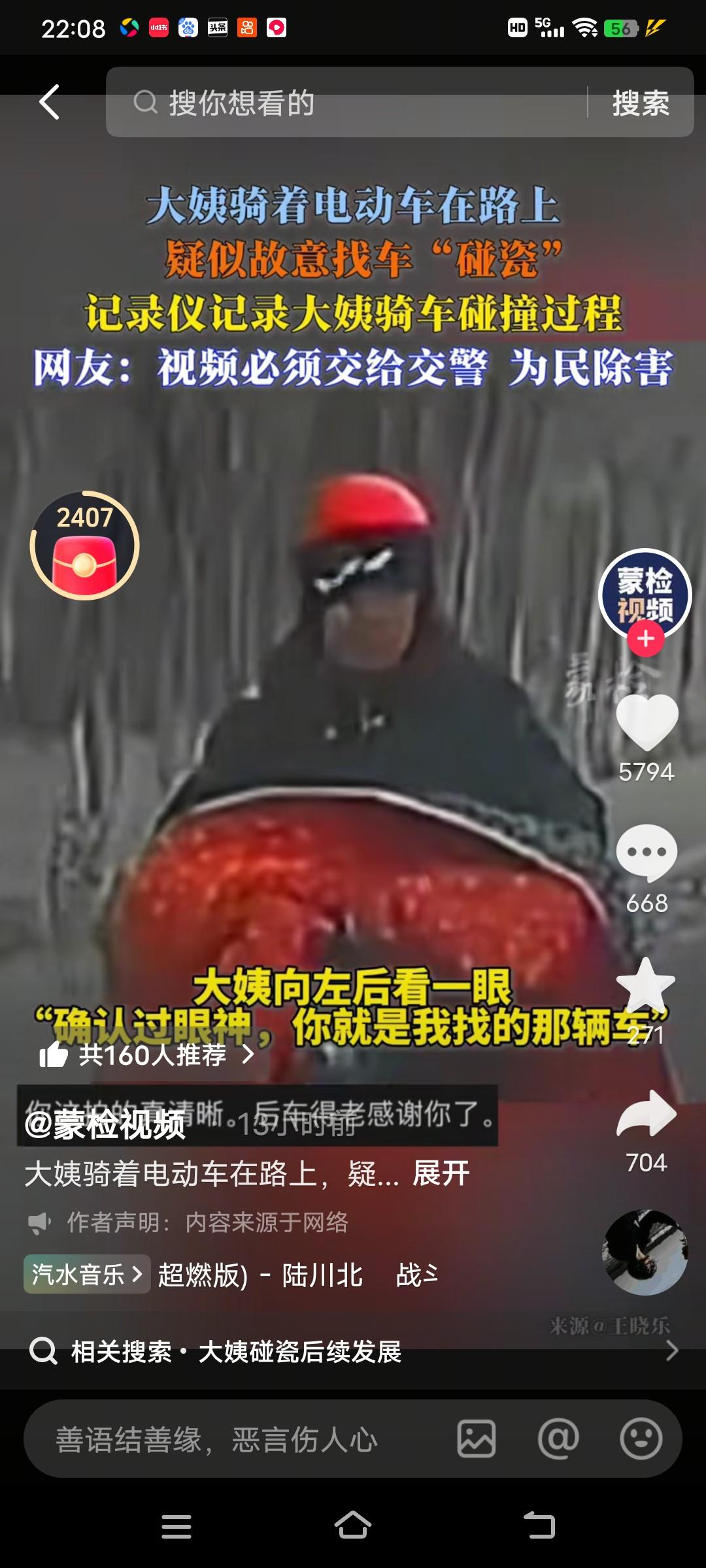 “碰瓷遇上硬茬!”辽宁一男子正常开车行驶在道路上,一老太太骑着电动车靠边行驶,车身时不时的还往外晃,男子意识到不对,机智躲过,谁知,老太太竟没放弃,后车直接中招! 网友:“这么熟练,肯定讹过别人,尝到甜头了!” 据媒体11月6日的报道,辽宁盘锦,一男子(王先生)驾车正常行驶在马路上,经过一路口时,一戴红色头盔的老太太骑一辆辆电动车出现了。 从视频上看,老太太瞄了一眼旁边的王先生的车时,就放慢了车速,等到王先生的车要超过她时,老太太竟故意拐了一下车把,好在王先生看出了老太太有问题,及时点了刹了车,然后又往左打了方向,绕了一大圈超了过去,才没碰到。 王先生以为老太太没有得逞,会放弃,谁知,老太太又看准了后面的车辆。 而后面那辆车还没有意识到危险离他越来越近了,正常行驶着。 就当后车快要超过老太太时,老太太还是先瞄了一眼,然后在后车和她并行时,故意朝车辆一方拐,结果撞到了车尾,老太太连车带人摔倒在地,车主只能停下来查看情况。 而,这时“得逞”的老太太开始“表演”了,她躺在地上呻吟不止,表现得很痛苦,嘴里不停的指责着是车主撞到了她。 然而,这一切都被王先生从后视镜看到了,认为这老太太就是在碰瓷,就报交警了,也报警了。 之后,王先生连线到了后车车主。 后车车主说,老太太先提出要2000元当作医药费,这事就算了。 后车车主听了直摇头,还在纳闷:自己开车也没有乱打方向,直线行驶的,怎么就撞人了呢? 后车车主没有答应,对看老太太说:“报交警处理吧”。 而老太太一听车主要报警,神情立马紧张了,连忙表示给500元也行。 见车主还不同意,老太太又降到200元。 可是,车主不想就这么不明不白,坚持要报警,老太太见状,扶起车子就跑了。 为了防止其他车主受害,王先生和后车车主将视频交给交警处理了。 不得不说,这老太太的一番操作简直惊掉下巴呀!这是要钱不要命啊!虽说是自己故意摔的,毕竟是摔在马路上估计也挺疼的吧! 从老太太前后两次,同样的做法,显然不是头一次这么干了,对自己的损伤也把握的很好,而且,目的明确,给钱事了。 所以,遇到这种情况绝不选择花钱了事,那只会助长这种歪风邪气,让下一个受害者更容易掉入陷阱。 这个社会或许总有想走捷径、不劳而获的人,遇到了就不应该放过! 我们都应像王先生一样,多一份警惕和热心;像后车车主一样,多一份较真和勇气。 当“硬茬”越来越多,“碰瓷”的土壤才会越来越贫瘠。 毕竟,阳光之下,正义或许会迟到,但绝不会缺席。 对此,你有什么看法呢?欢迎评论区留言讨论!