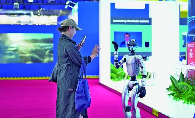 进博会上,观众在与机器人互动。本报记者汪媛摄/光明图片