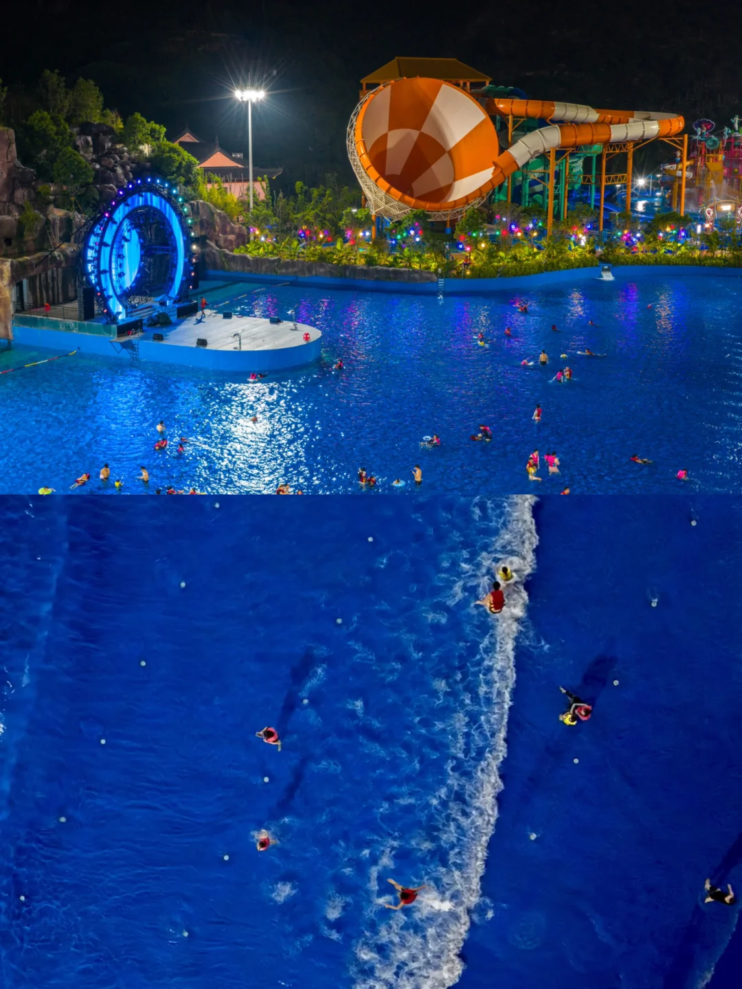 18:30 水世界💦:造浪池电音蹦迪+夜光滑道