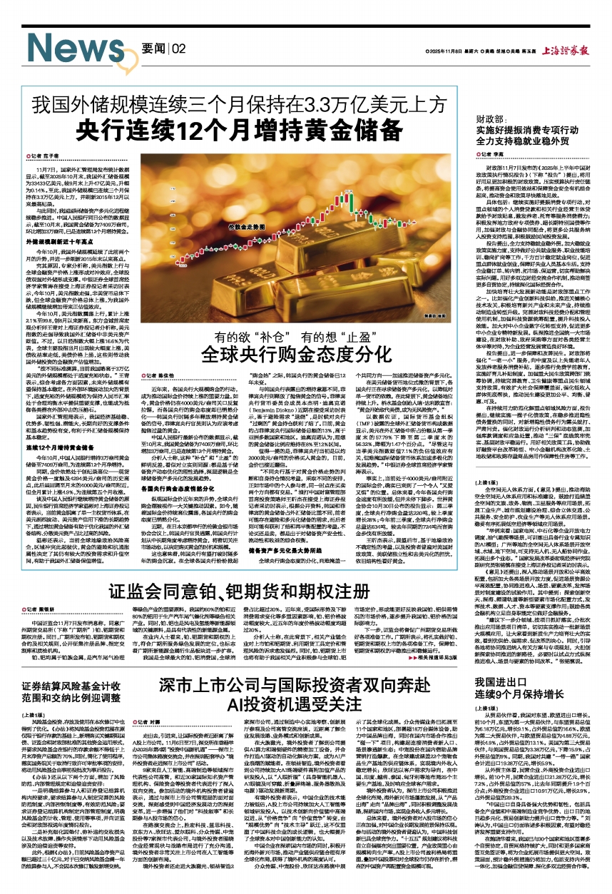 与此同时,我国国际储备资产多元化进程继续稳步推进。中国人民银行同日公布的数据显示,截至10月末,我国黄金储备为7409万盎司,环比增加3万盎司,已是连续第12个月增持黄金。