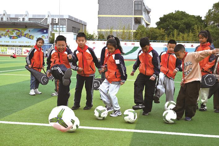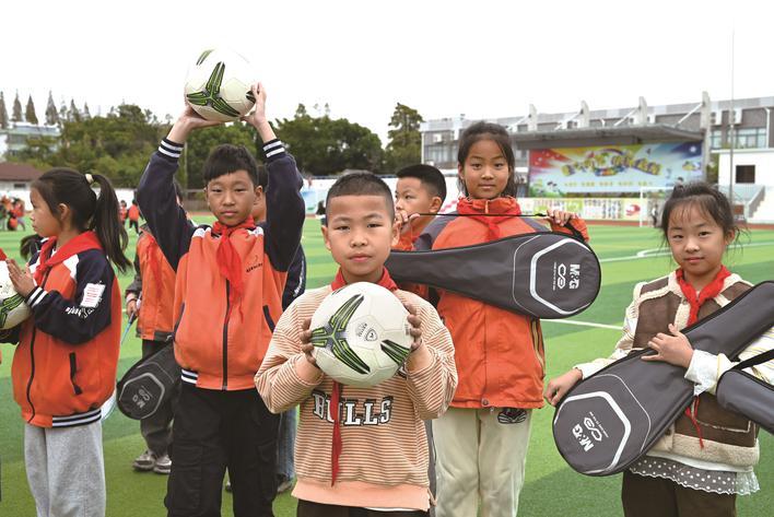 收到心爱的足球,凤桥镇中心小学的男孩们迫不及待冲向绿茵场,起脚、发力,快乐的笑声一起抛出,“和同学们一起踢足球,感觉特别棒!”