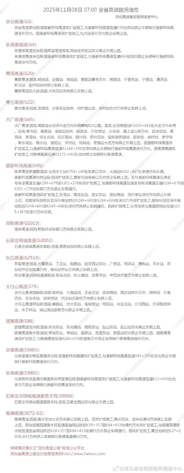 河北省气象台2025年11月08日06时09分继续发布大雾黄色预警信号: