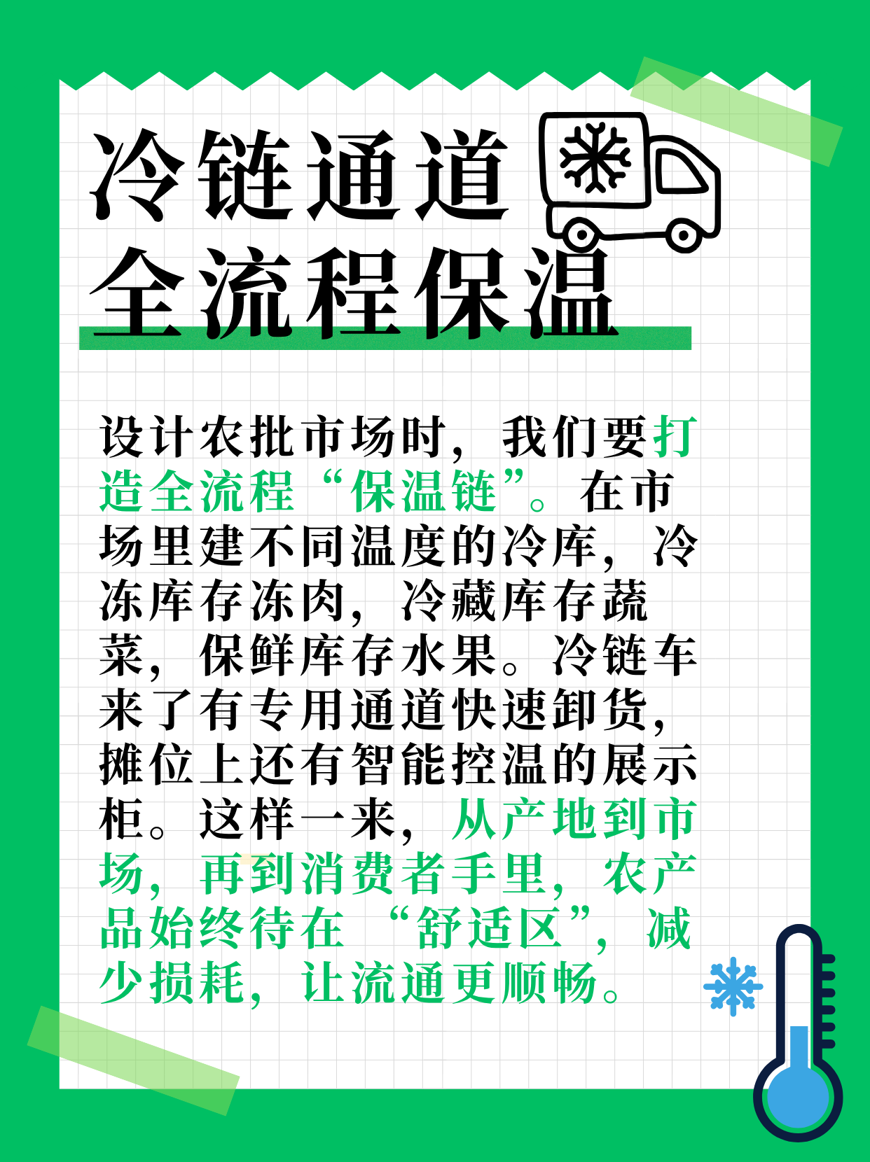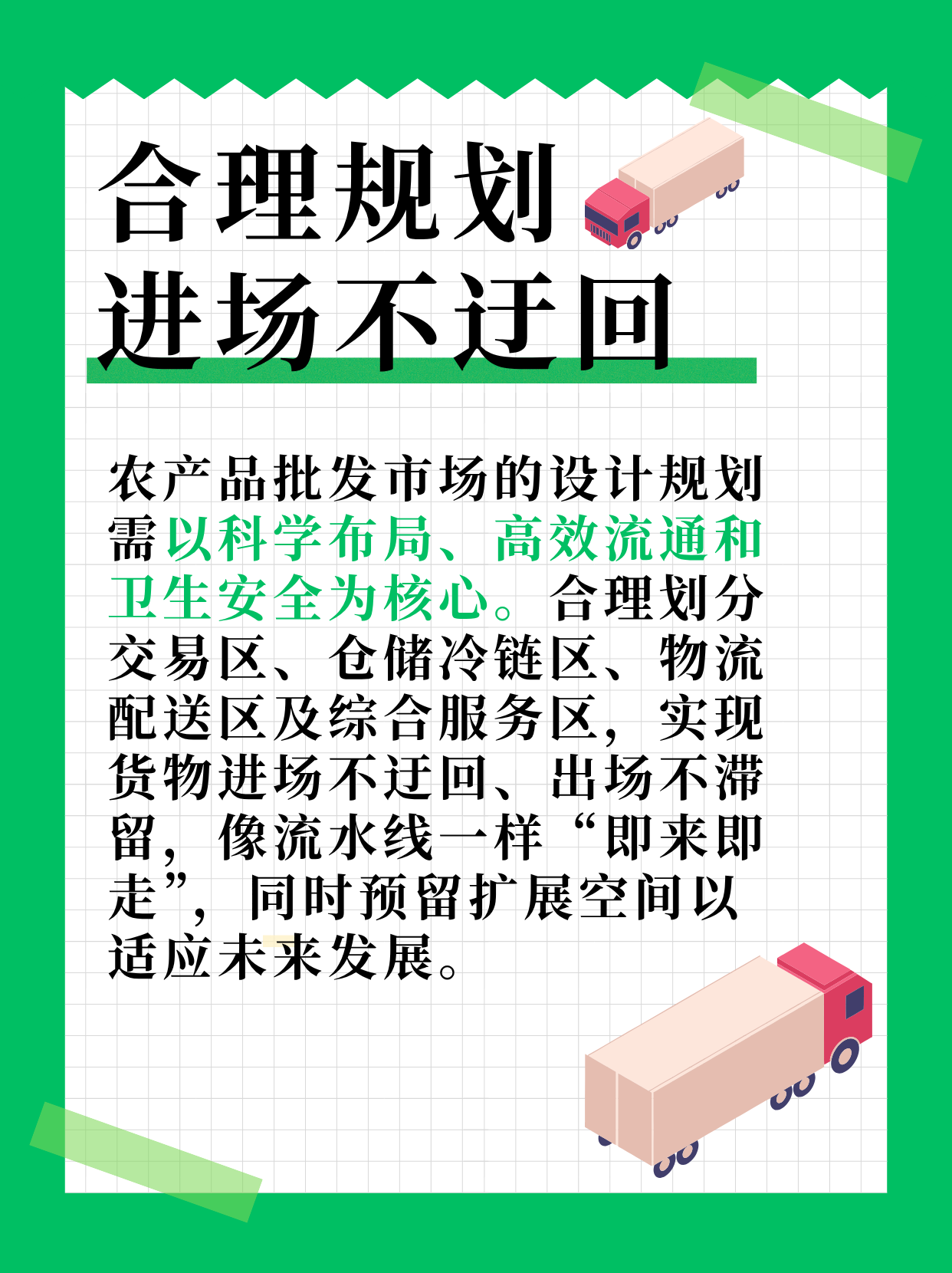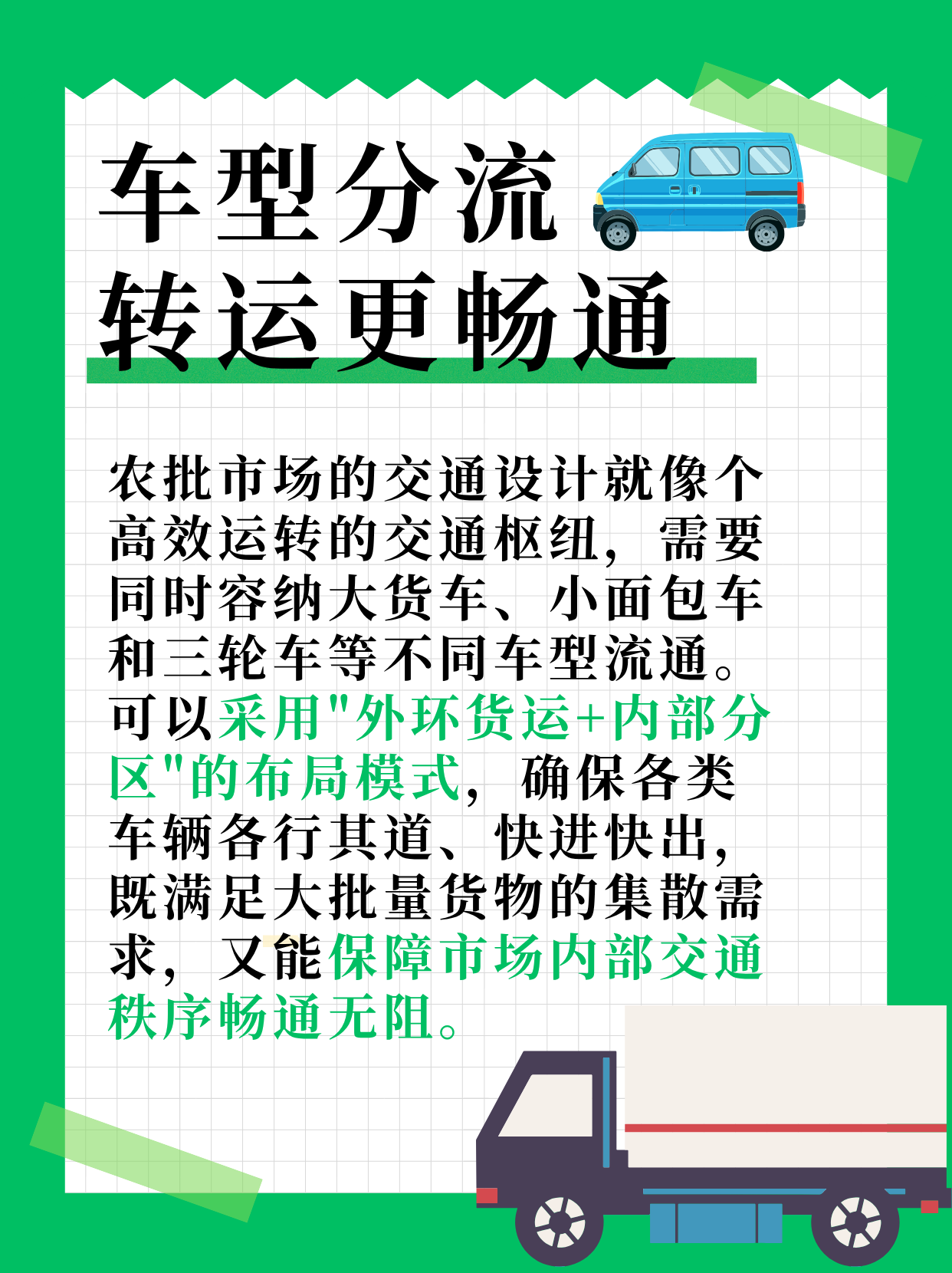 一、合理规划,进场不迂回 二、车型分流,运转更畅通 三、冷链通道,全流程保温 四、智慧农批,管理更高效
