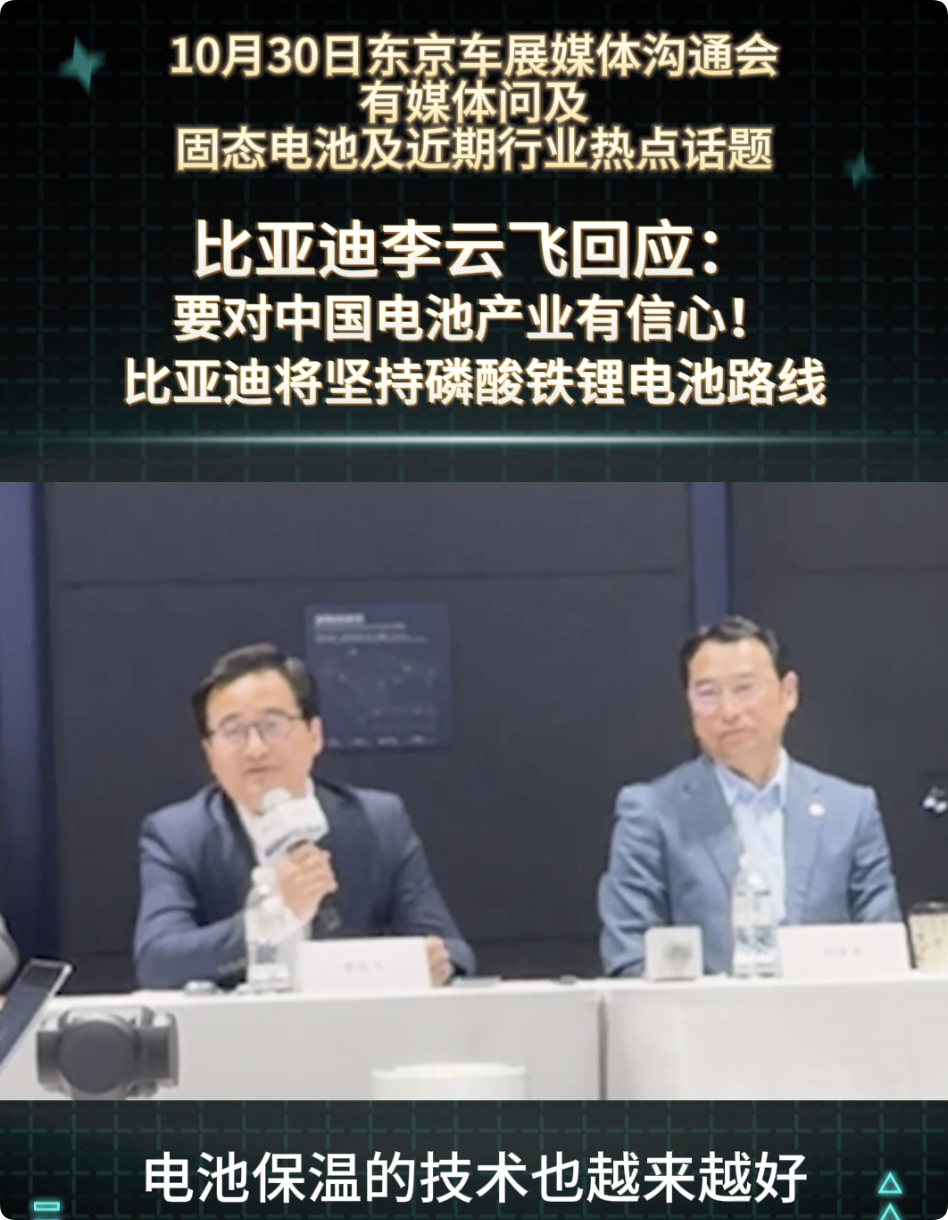 近期电池路线讨论中,磷酸铁锂电池的市场表现已给出明确答案,今年 1-9 月,其累计装车量高达 493.9GWh,同比劲增 42.5%,市场份额一举突破 80%,创下历史新高,成为当前电动车动力电池领域无可争议的绝对主流,这一数据背后,是技术实力与市场选择的深度契合。 比亚迪李云飞在东京车展沟通会上指出,这样的市场格局并非偶然:磷酸铁锂电池不仅有庞大的产业体量与研发支撑,更以成熟技术赢得信任 ,中国 15 年公交电动化进程中,全磷酸铁锂配置的电动大巴未发生恶性燃烧事故,冬季保温技术升级进一步补齐使用短板,加之全面的充电配套设施,让该路线成为用户与市场的双重优选。 作为该路线的坚定践行者,比亚迪将持续以技术坚守与市场洞察力,带动行业聚焦安全与成熟技术路线,凭借磷酸铁锂的市场主导力与技术延展性,促进动力电池行业发展。