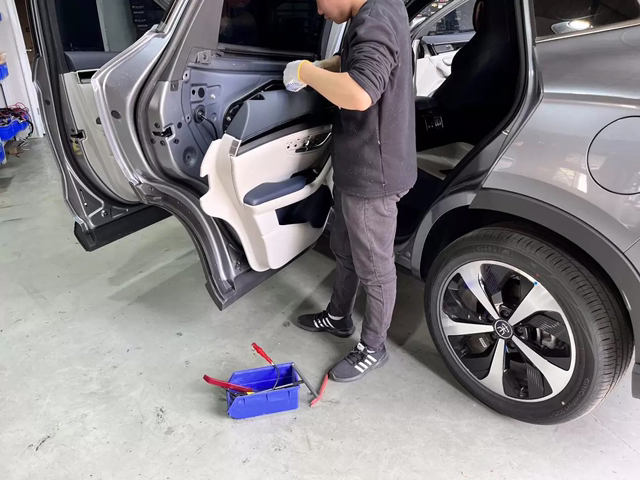 升级隔音体验 小宋一直感觉有风噪音呼呼的一直从后面传来,可能原车前门是双层的后门不是的原因,这次改装给后门也换上,效果不错,双层隐私的隔音玻璃没有色差,四门也做做隔音板顺手,效果非常不错