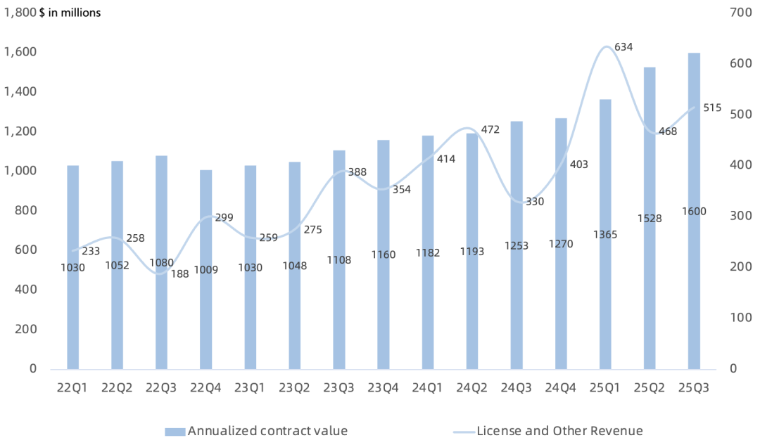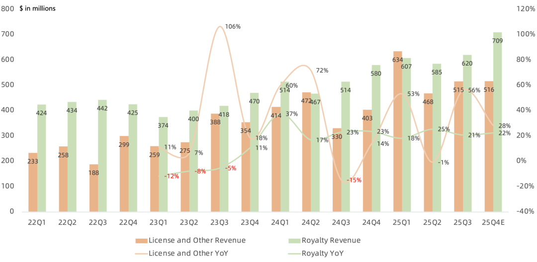 预计Q3Royalty收入同比增长略高于20%,License营收同比增长25%-30%;
