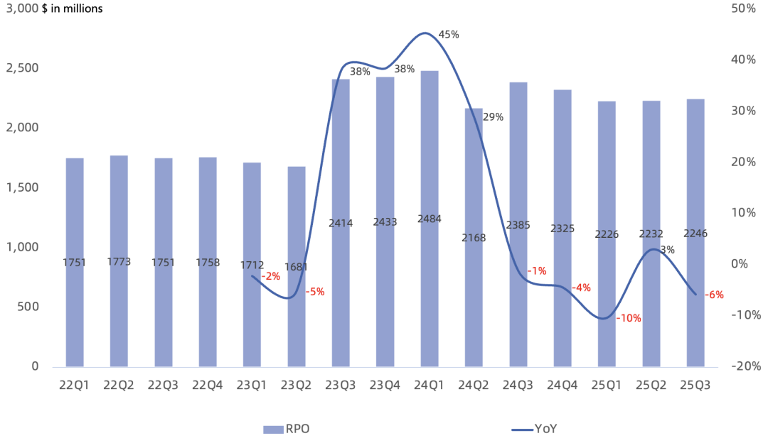 ACV16亿美元,同比增长28%,环比增长5%;RPO22.5亿美元,同比下滑6%,持续疲软,其中29%会在未来12个月内确认收入,16%会在未来13-24个月内确认收入。