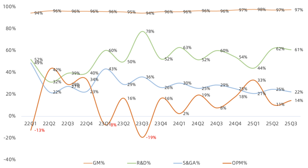 GAAP毛利率97.4%,同比提升1.2个百分点,继续冠绝全球;