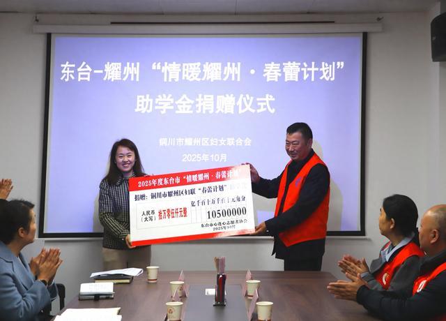 爱心不止于“筑屋”,更在于“助学”。10月24日,2025东台—耀州“情暖耀州·春蕾计划”助学金捐赠仪式在耀州举行,东台市心连心志愿者协会副会长丁同荣详细介绍了2025年度“情暖耀州·春蕾计划”的项目规划与实施情况,并向耀州区捐赠本年度“春蕾计划”助学款10.5万元,用于56名困境女童助学金发放,其中小学生每人1000元、高中生每人2000元。耀州区委常委、副区长高伟在致辞中表示:“东耀协作心手相连,春蕾计划用深情厚谊助力孩子们绽放未来,让两地携手同行的步履更坚定。”作为东耀协作中的爱心民生工程,从2017年开始的“情暖耀州”到2023年启动的“春蕾计划”,东台市心连心志愿者协会已累计为耀州困境学生发放助学金90多万元。