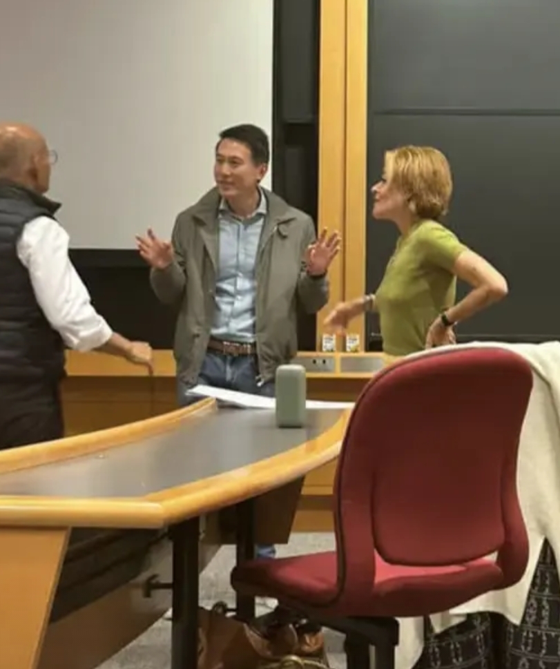 TIKTOK总裁周受资到哈佛大学给学生上课,他的穿衣打扮很有型,文质彬彬,非常的帅气!虽然已经是一个42岁的大叔了,但身上没有太重的沧桑感! 下课之后,他没有马上离开教室,而是留下来和学生们交流,态度非常亲切,完全没有大公司总裁高高在上的姿态。