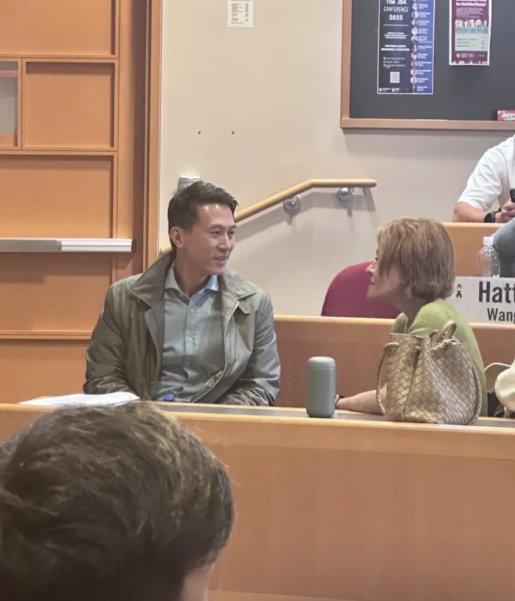 TIKTOK总裁周受资到哈佛大学给学生上课,他的穿衣打扮很有型,文质彬彬,非常的