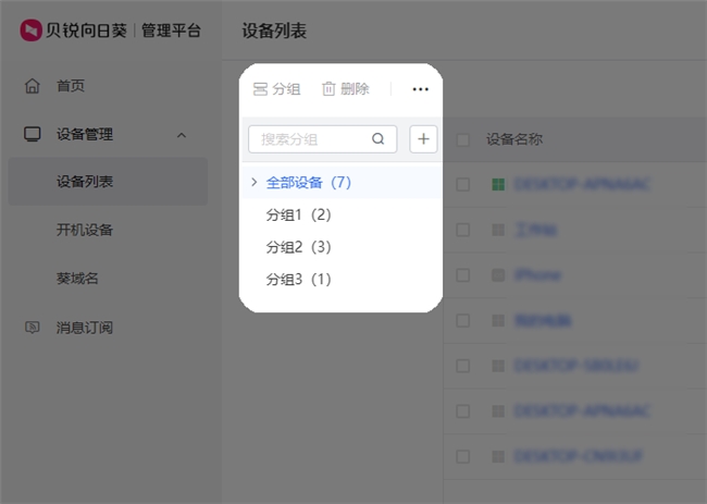 无论你有多少台设备,只需在管理平台轻松创建分组,就能实现多设备清晰分类、状态实时显示,查找和远控都更加高效顺手。