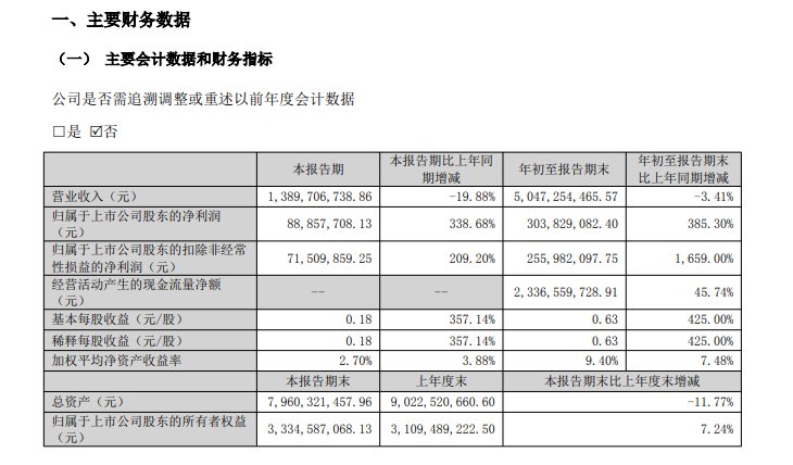 据悉,晨光生物2025年第三季度报告指出,第三季度公司营业收入13.90亿元,同比减少19.88%,归母净利润8885.78万元,同比增加338.68%;营收下降的前提下,净利润实现大幅增长,盈利能力显著提升。