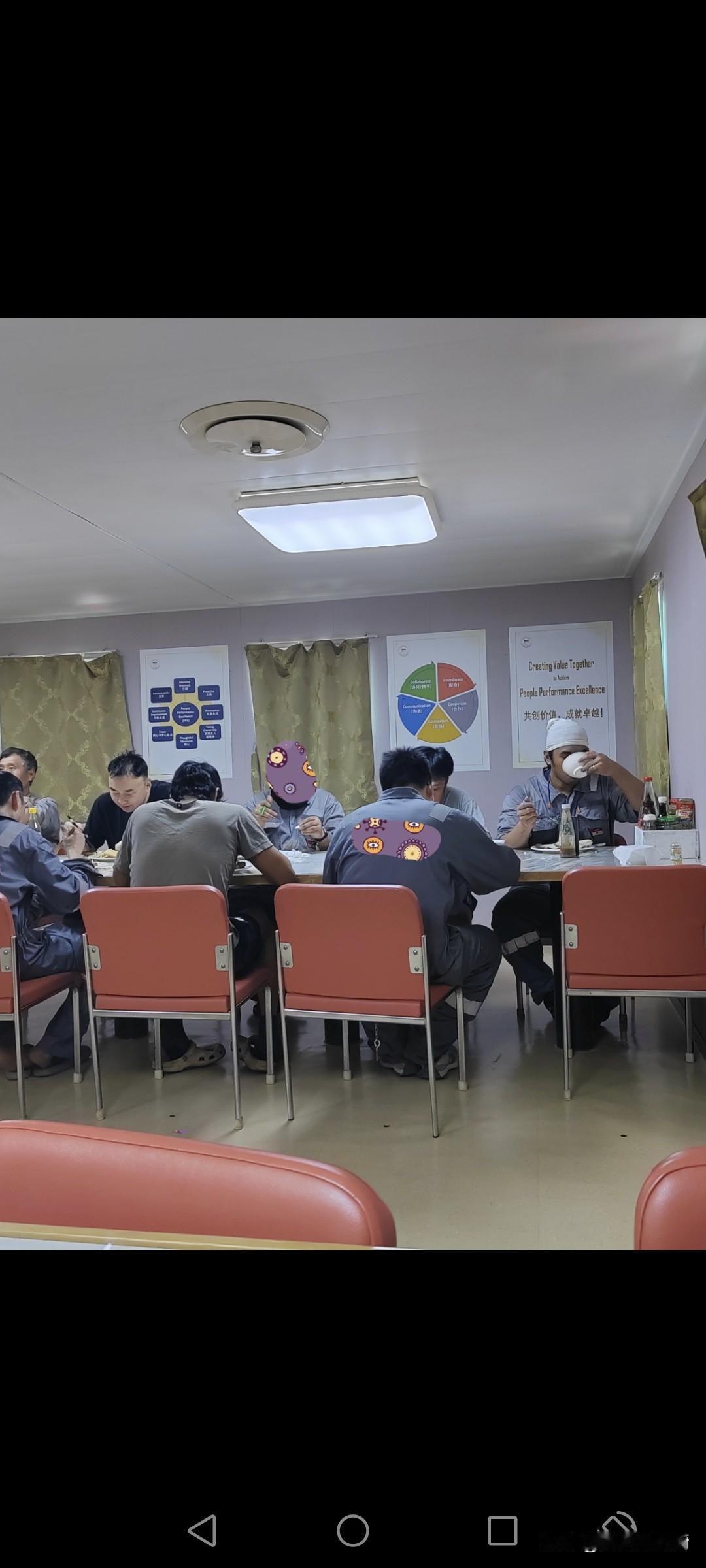 今天实在是有些累了,吃了晚餐,赶紧回房间休息一下,等会再回厨房准备明天的早餐吧! 下午2:20分到的厨房,(中午12:30分回到房间)下午茶的点心给炸的芝麻球,炸完后,感觉时间挺早,就把厨房的地面刷了一遍,就到肉库整理库房了,由于船舶摇晃,库房又小,把我整的有点晕了,一看时间4:30了,赶紧回厨房做饭去吧!要不又要晚了,牛蹄是上午就焖上的,弄了个秋葵和西葫芦炒鸡蛋,最后又做了个汤,就算完活了。 肉库总算整理完了,菲律宾大厨上的伙食极其简单,品种太单调了,整鸡,鸡胸肉,鸡翅,排骨,五花肉和牛腩,就这几种肉类,看来这个航次就要在这几种肉类中变换花样了! 今天又摇晃了一天!