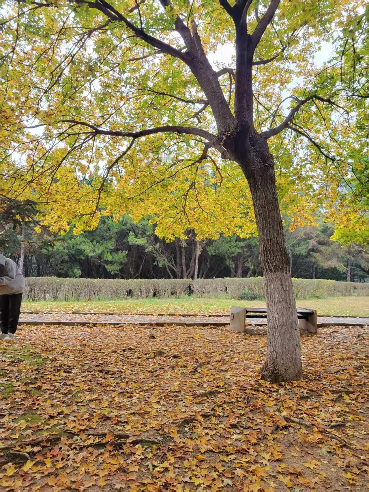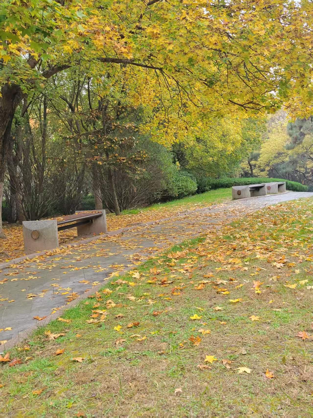秋意渐浓,漫步公园,落叶纷飞,静享美好时光。偶遇不怕人的田园三花猫秋日公园美景