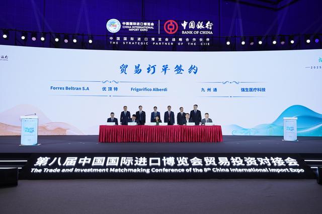 签约环节成果显著,共有9个重点项目成功签约,覆盖高端装备、新能源汽车、现代农业、文旅等领域,累计签约额达28.9亿元,预计未来总产值将达78.3亿元。其中,上海金锦富新材料科技有限公司将投资建设新材料生产基地项目,项目达产年产值35亿元;浙江颢屹汽车技术有限公司将投资建设年产20万台新能源汽车底盘件项目,达产年产值5.6亿元。贸易订单方面同样表现亮眼,优合集团计划签订2亿美元南美牛肉采购订单;上海九州通医疗器械供应链有限公司将签订约1.8亿美元医疗器械采购订单。