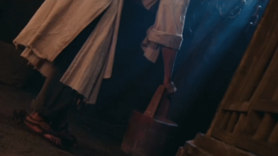 哥哥坐在床上给妹妹穿袜子,穿来穿去穿不进去,还发出质疑的声音,心想这袜子咋这