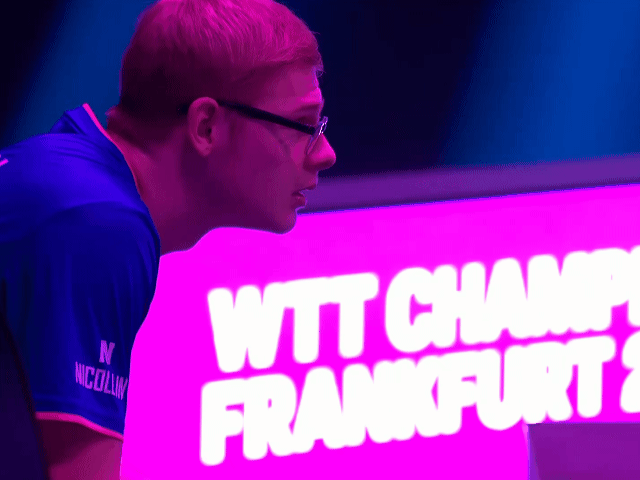 止步2025WTT法兰克福冠军赛男单八强赛的菲利克斯勒布伦,在场边听完了林德的赛