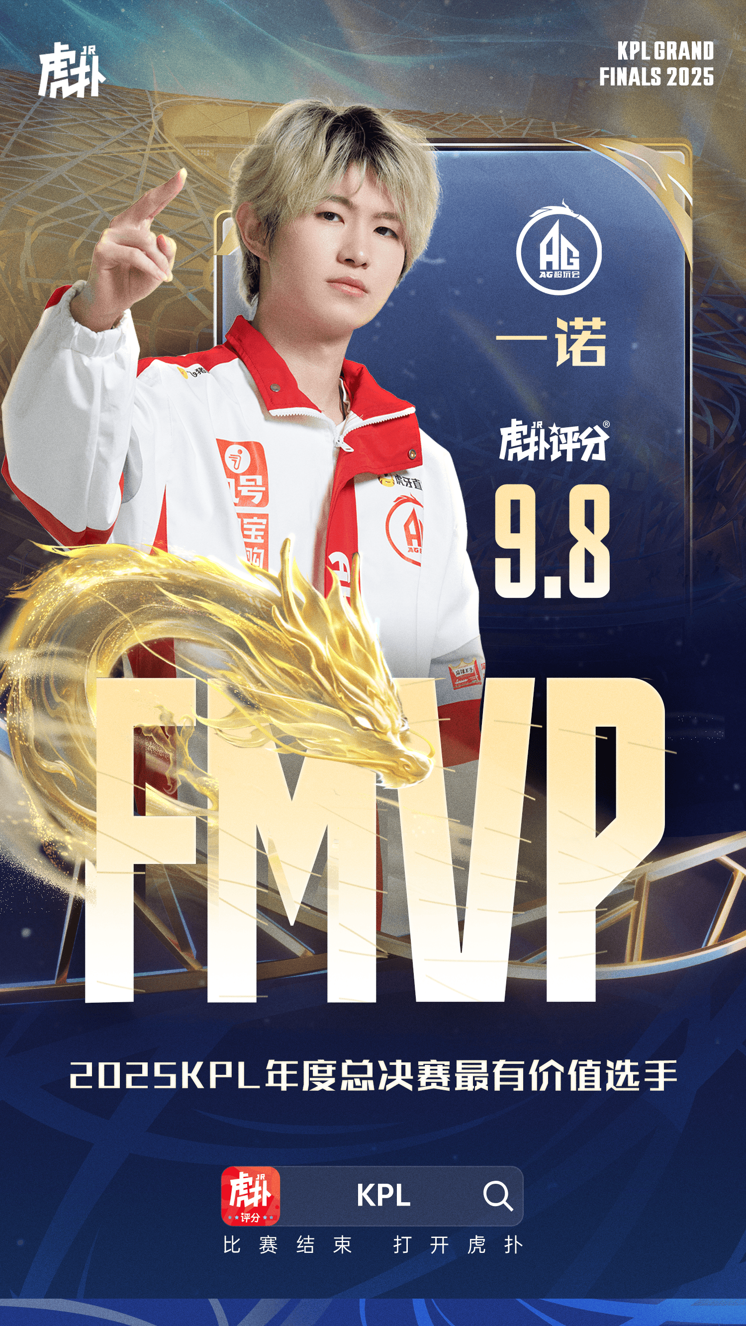 虎扑11月08日讯恭喜成都AG超玩会.一诺荣膺2025KPL年总总决赛FMVP!