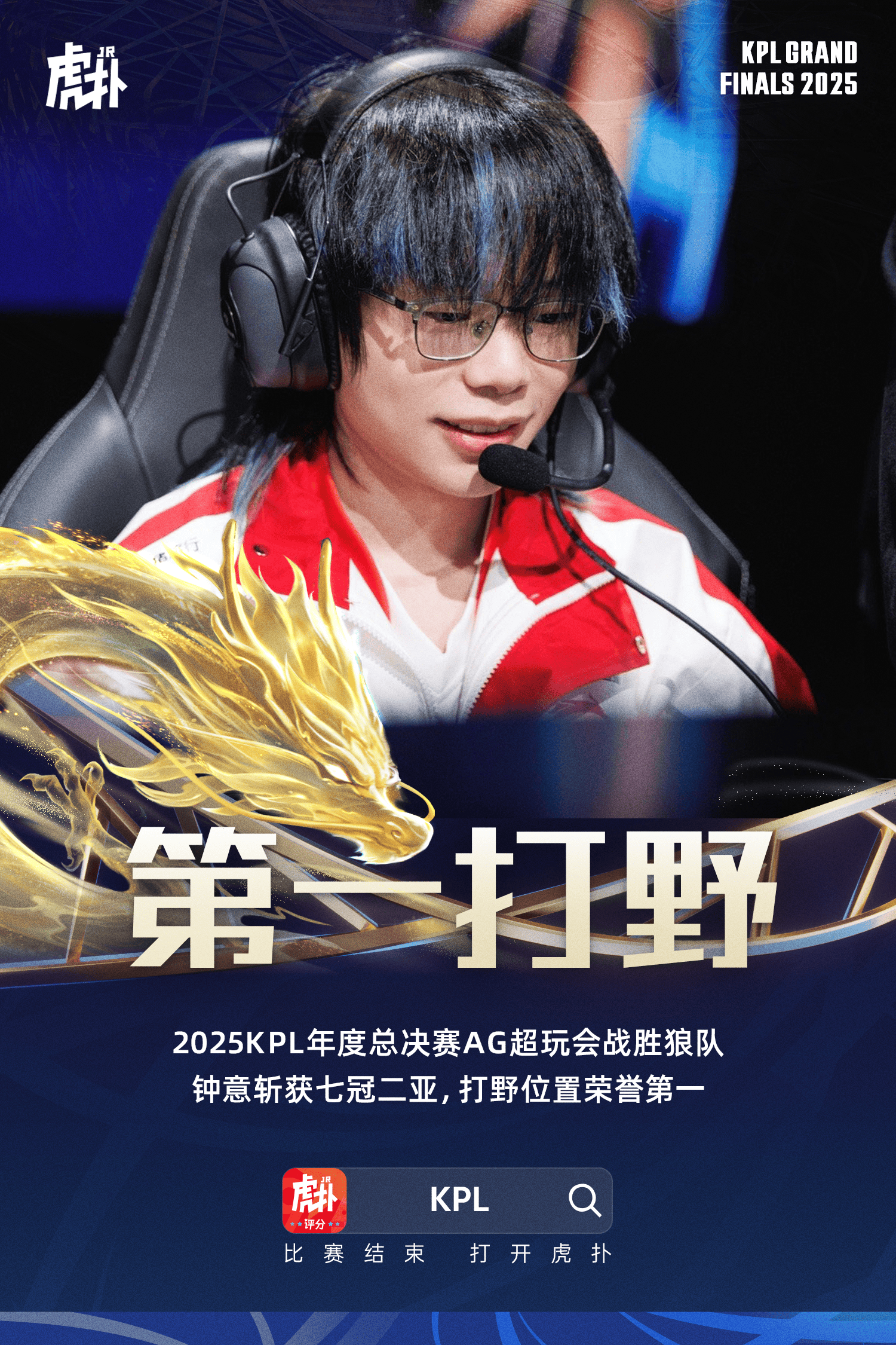 虎扑11月08日讯成都AG超玩会.钟意斩获生涯第七冠,七冠两亚3FMVP打野联赛第一