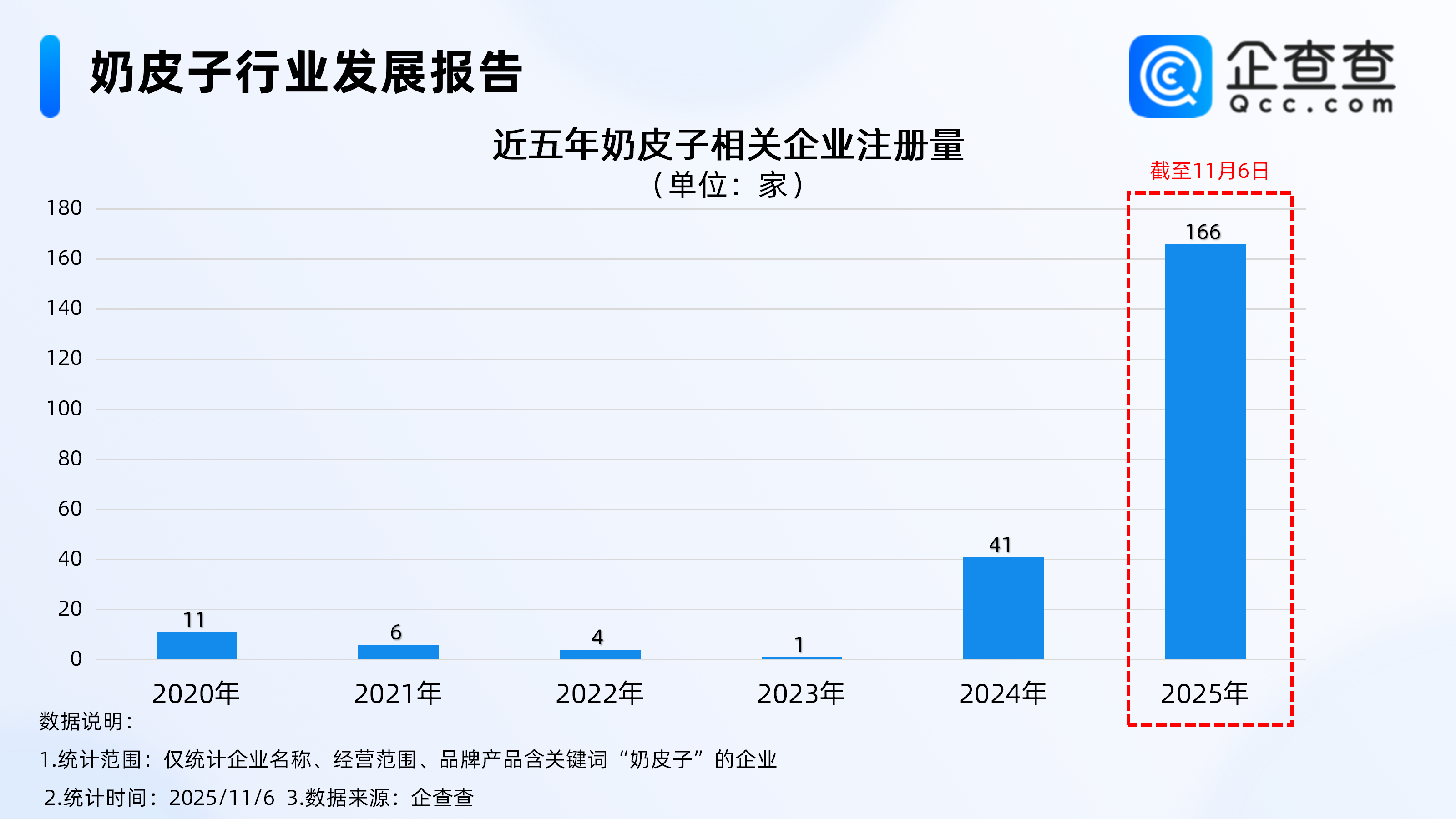 企查查数据显示,注册量方面,2024年起,奶皮子相关企业注册量较往年相比增长明显,特别是2025年,涨势明显。截至目前,今年已注册166家奶皮子相关企业,是去年全年注册量的4倍。