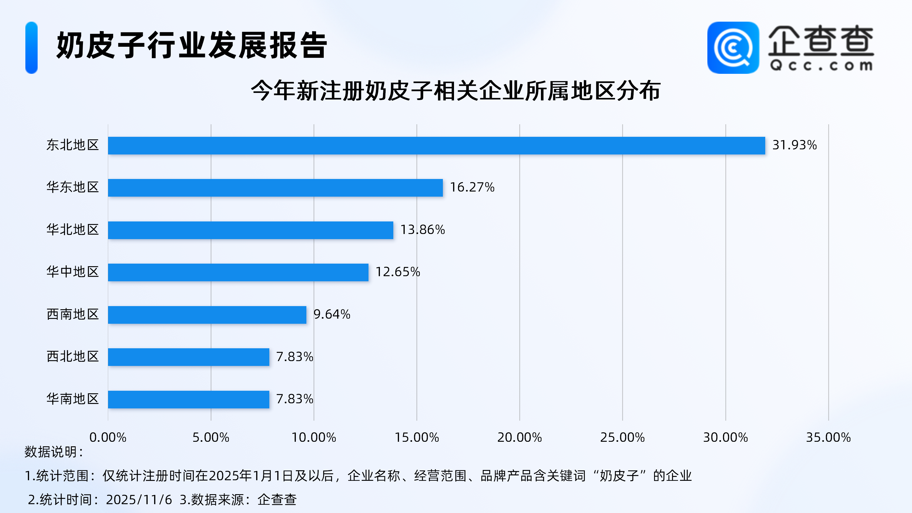 企查查数据显示,截至11月6日,国内奶皮子相关企业现存量达235家,超7成相关企业成立于1年内,占比达74.04%。注册量方面,截至目前,今年已注册166家奶皮子相关企业,是去年全年注册量的4倍。从地域分布来看,今年新注册的奶皮子相关企业,多分布在东北地区,占比达31.93%,其次为华东、华北地区。