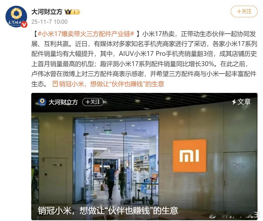 小米17爆卖带火三方配件产业链 小米17系列的热销,正让“小米经济”的协同效应持