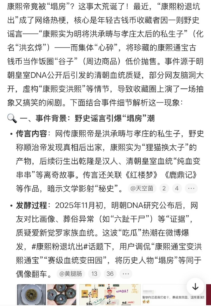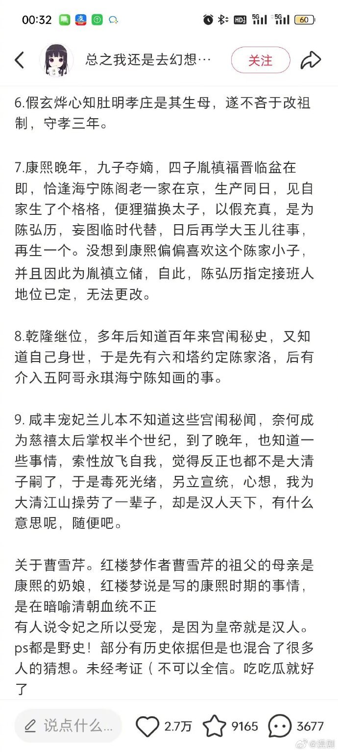 康熙的瓜短短几天就传播全网,也要依靠过去几十年满清历史电视剧的普及,《雍正王朝》和一系列清宫穿越剧先完成基本的历史科普,什么九子夺嫡如数家珍,大家吃瓜才能吃的明白。