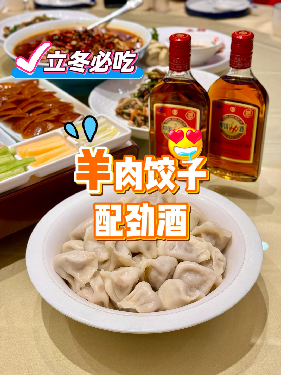 立冬的仪式感也安排上,羊肉馅饺子配劲酒,吃的养生,喝的也舒服。胃里暖暖的特别适合❄️冬天。[可爱]