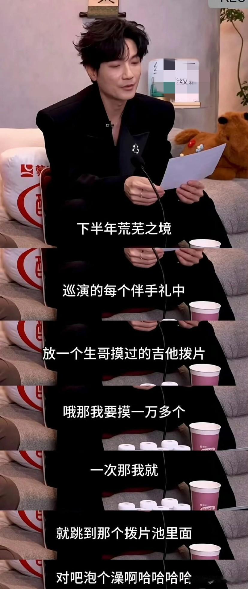 陈楚生武汉首唱《耍赖》 白西装配着温温柔柔的嗓音很治 愈 浪漫的他 还记得几个月前歌迷的许愿 送给大家一场吉他拨片雨 那么他有进去游泳吗嘿嘿 甚至还有胖梨为花生打伞的圆形卡片 六毛也陪在爸比身边开启甜甜的恋爱 真是惊喜连连啊 而花生们 也把自己的小六毛和自己打扮的美美的 去奔赴这场浪漫的约会 就是生哥的考试仍在继续 苦练弹舌的花生们又没跟上 因为里里太调皮又变了花样[大笑]