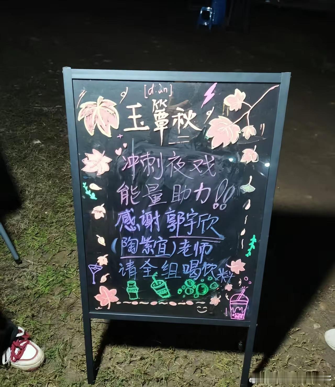 夜戏拍到凌晨3点 ,大家都疲惫不堪的时候,郭宇欣带着饮料来给大家补充能量了。