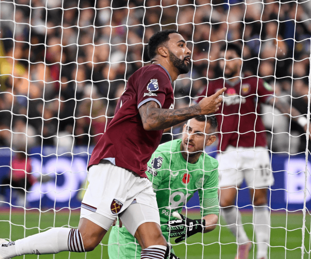 虎扑11月09日讯英超第11轮西汉姆联主场迎战伯恩利的比赛正在进行中,上半场比赛卡勒姆-威尔逊为西汉姆联攻入一球,目前双方战成1-1。