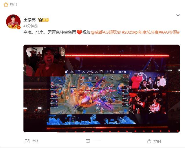 王铮亮的“天青色转金色雨”也太会说了!把AG夺冠的浪漫直接拉满,明星粉丝的这份祝福,和鸟巢的金色雨一样暖心~