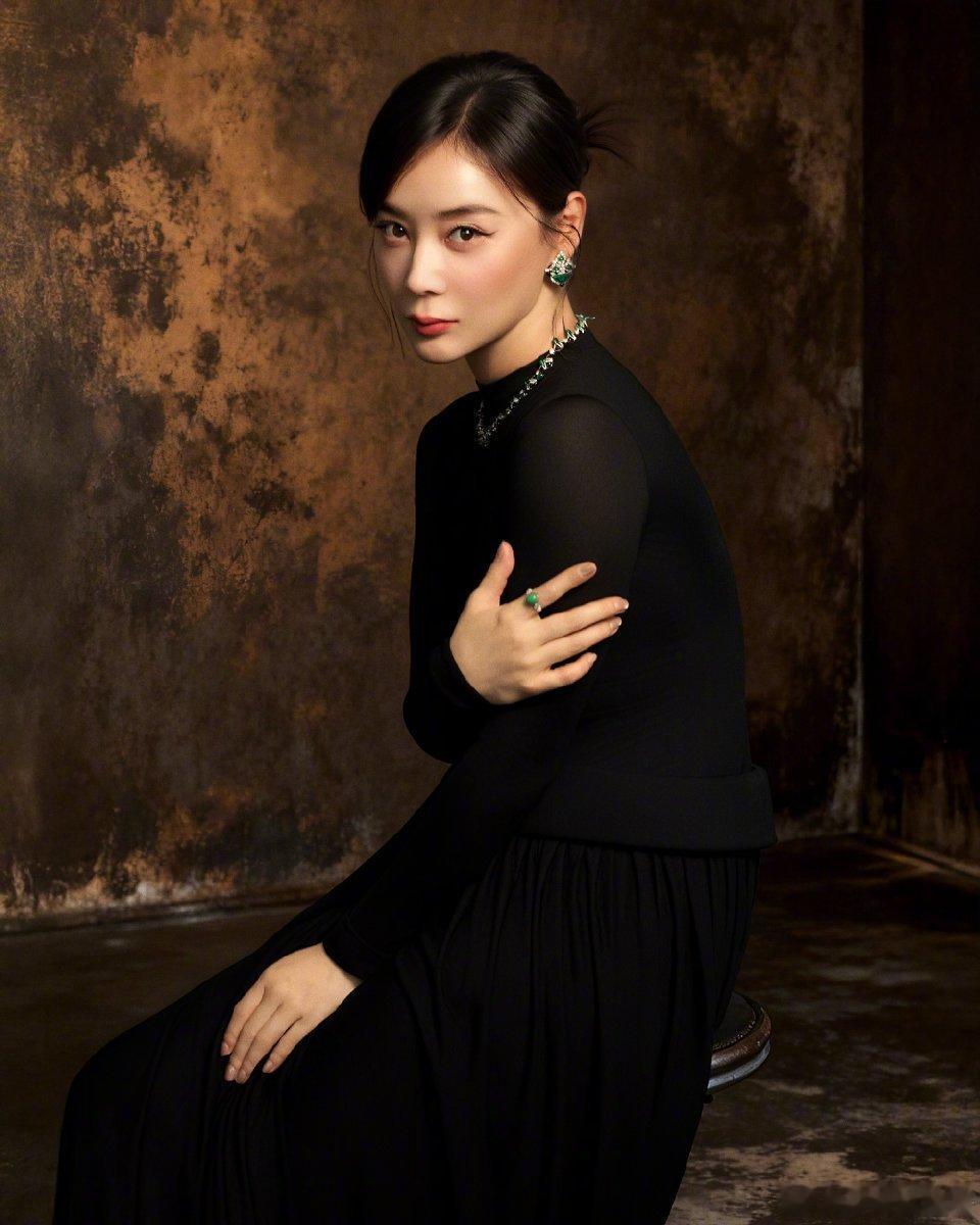 袁姗姗我那高智小姨回国了 纯黑长裙配祖母绿珠宝,盘发露肩颈,一笑又知性又灵动