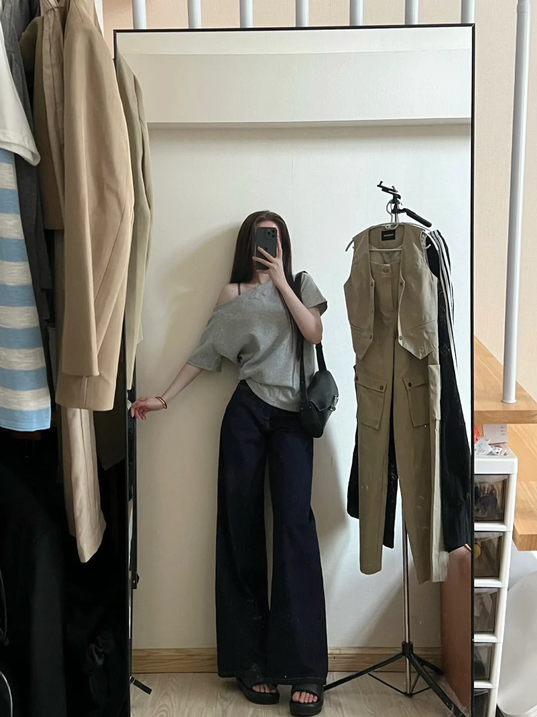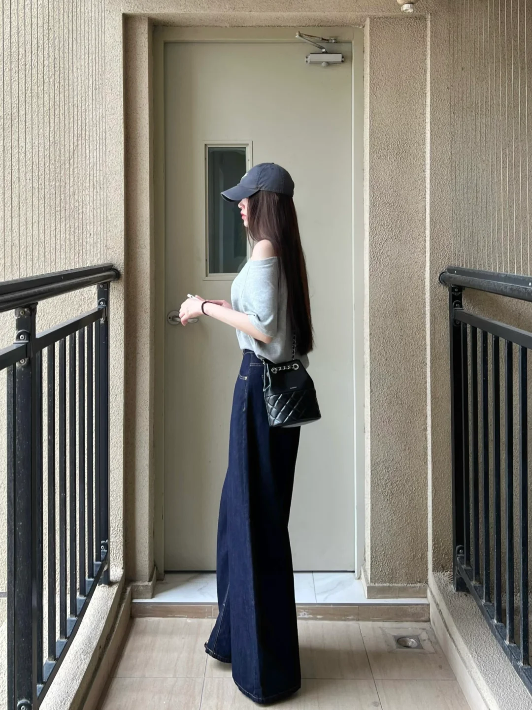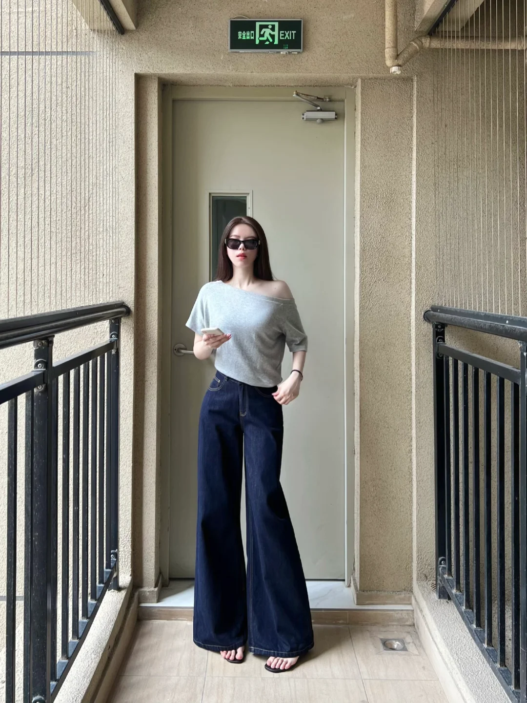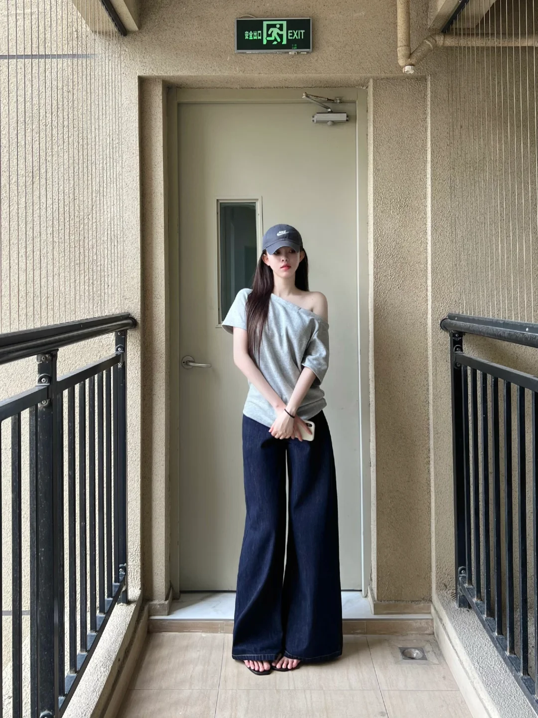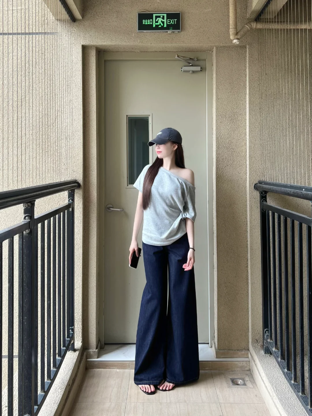 露肩上衣 阔腿裤 显瘦穿搭 日常 一衣多穿