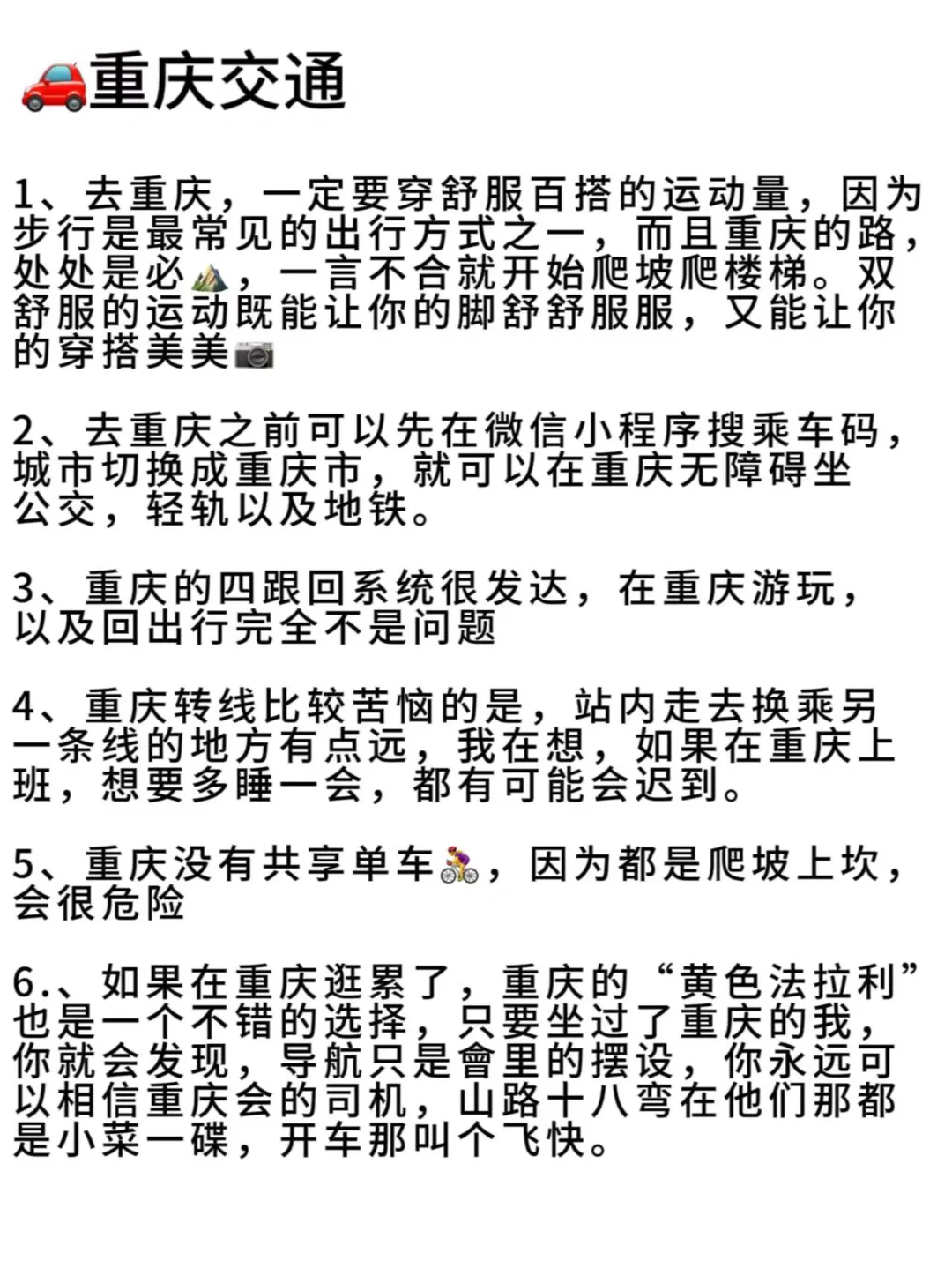 2⃣️来重庆带好,一双好走路的鞋子、充电宝、换洗的衣物、身份证、兩伞手、防晒霜、想拍美美的照片可以带上一个手机补光灯