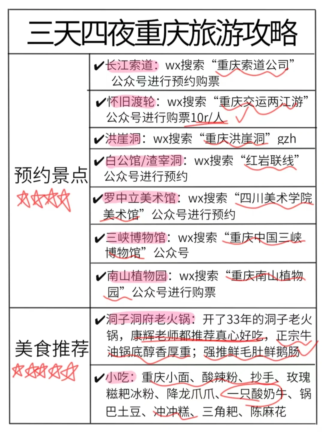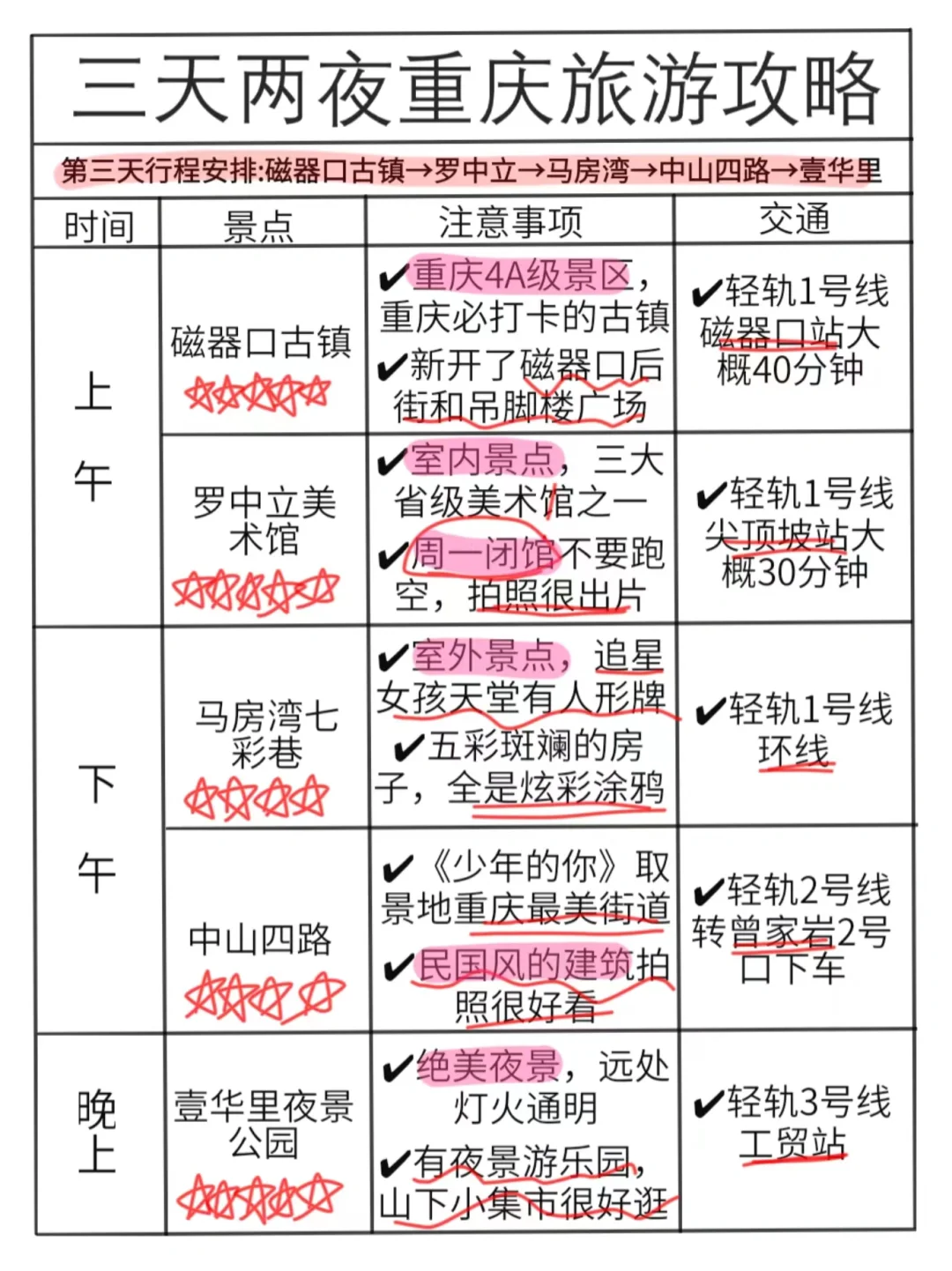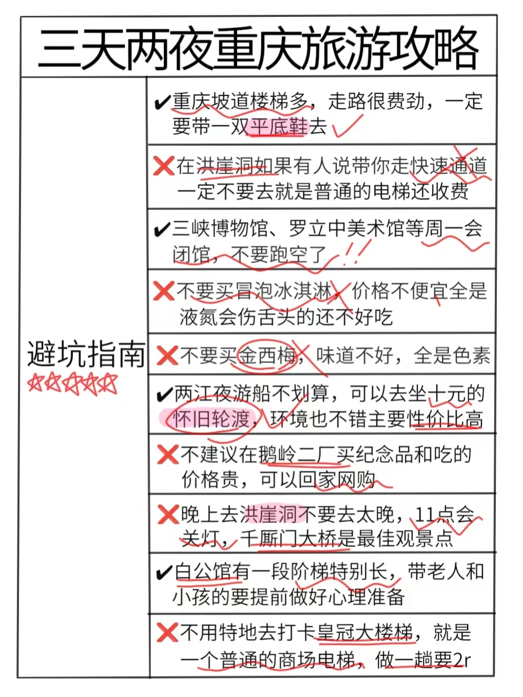 ⭐重庆旅游必备物品清单: