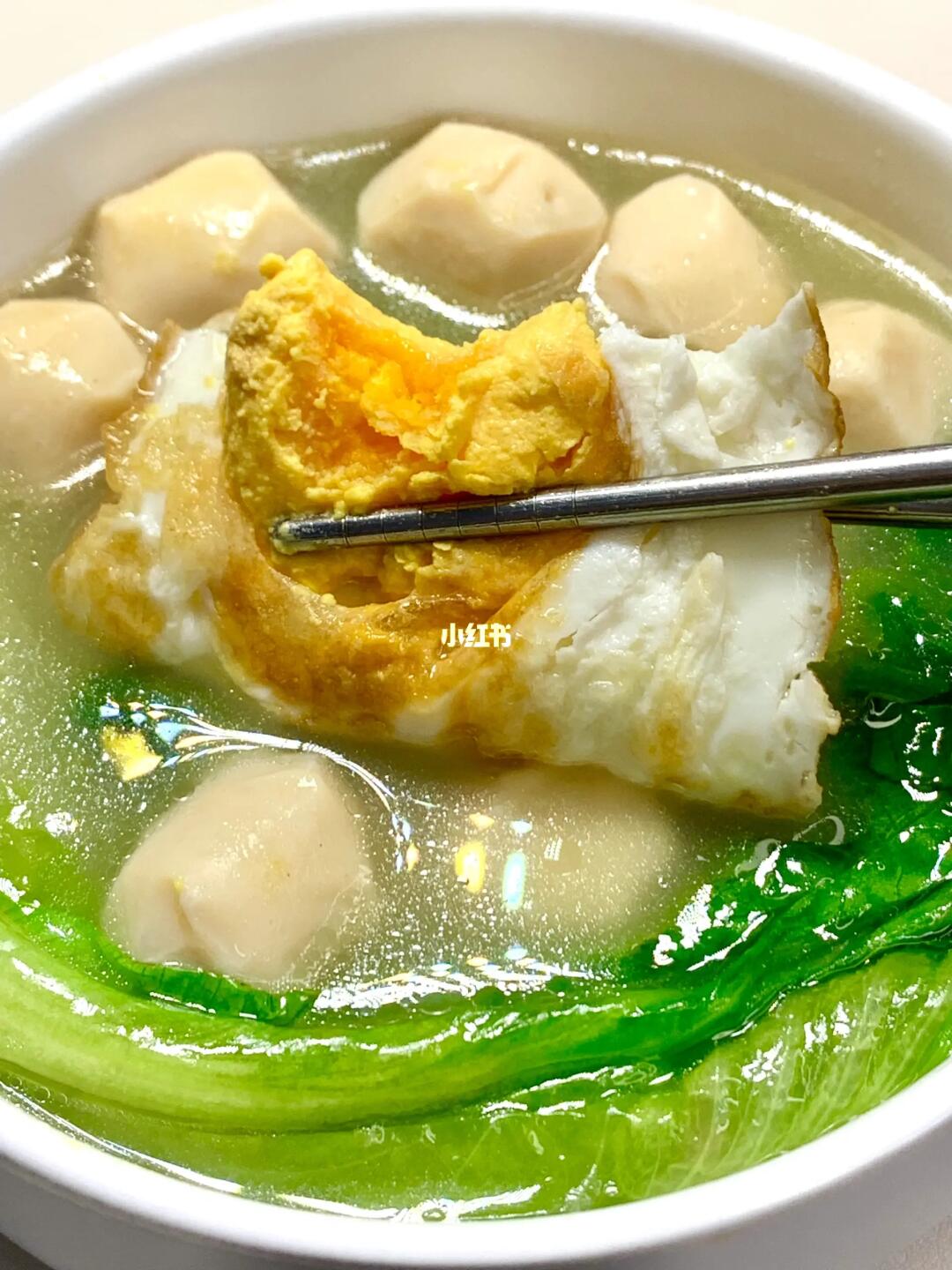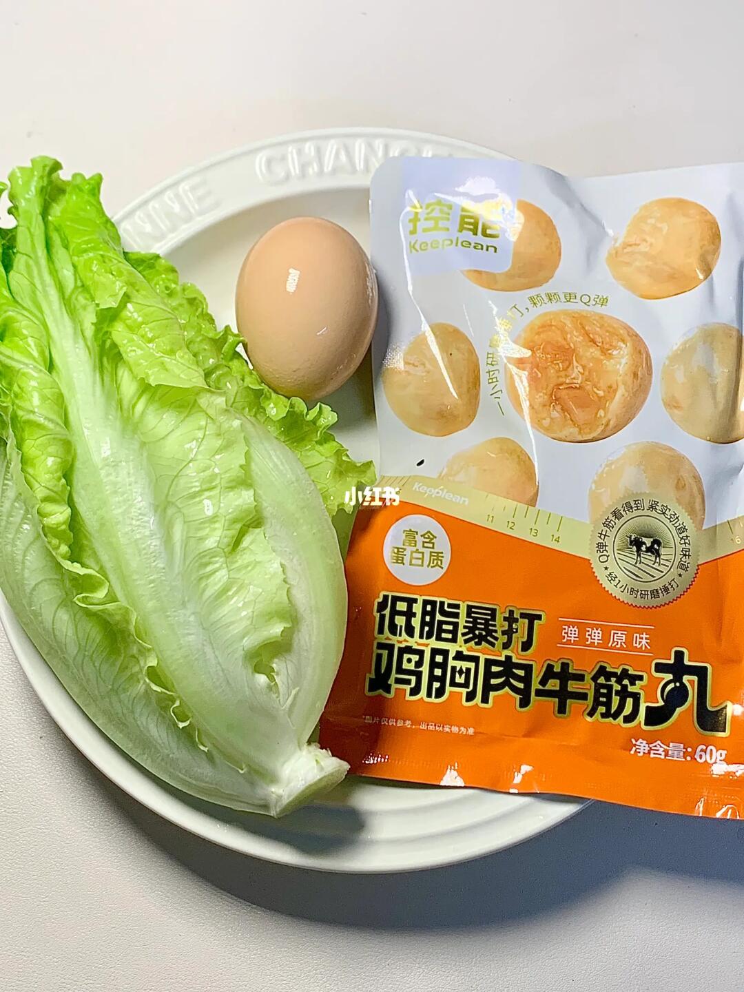 吃到撑不到300大卡! 非常简单鲜美的生菜鸡胸肉丸减脂汤! 🥬食材:生菜,鸡胸肉丸,鸡蛋 🥣做法: 1️⃣少油煎个荷包蛋 2️⃣加入适量水煮开 3️⃣放入鸡胸肉丸煮3分钟 4️⃣放入生菜煮至断生 5️⃣最后放盐和味精 胡椒粉 调味即可! 多少次不想做饭的晚上都是靠这渡过的! 刚刚暴食或者很久不掉称宝贝们可以试试! 这次图快手丸子用了现成的鸡胸肉牛筋丸,暴打工艺,鸡胸肉是养殖的冷鲜鸡小胸,还添加了5%的牛筋,Q弹紧实,完全不柴,煮在汤里满足了口感也补充蛋白质[色色R]