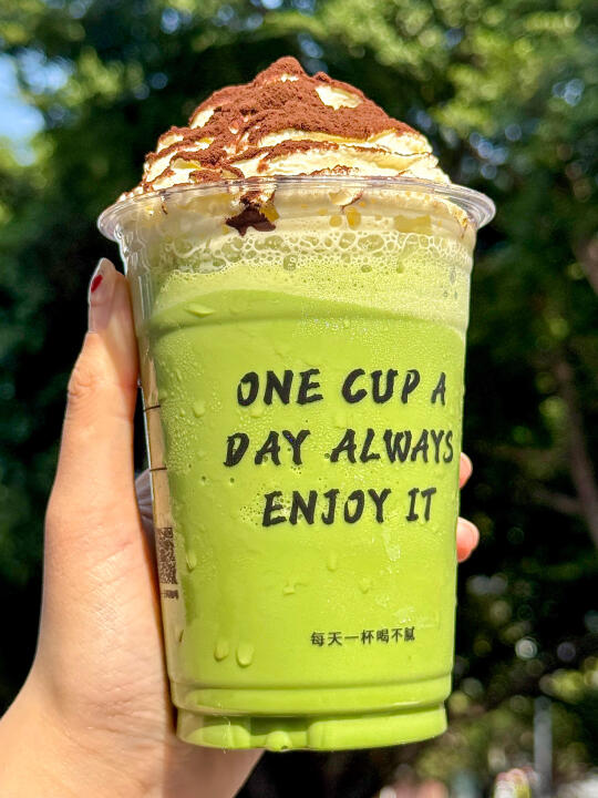 特浓抹茶搭配冷藏牛乳打成冰沙,再加上绵密的奶芙顶和香草糖浆!!尊嘟超好喝啊啊🥹