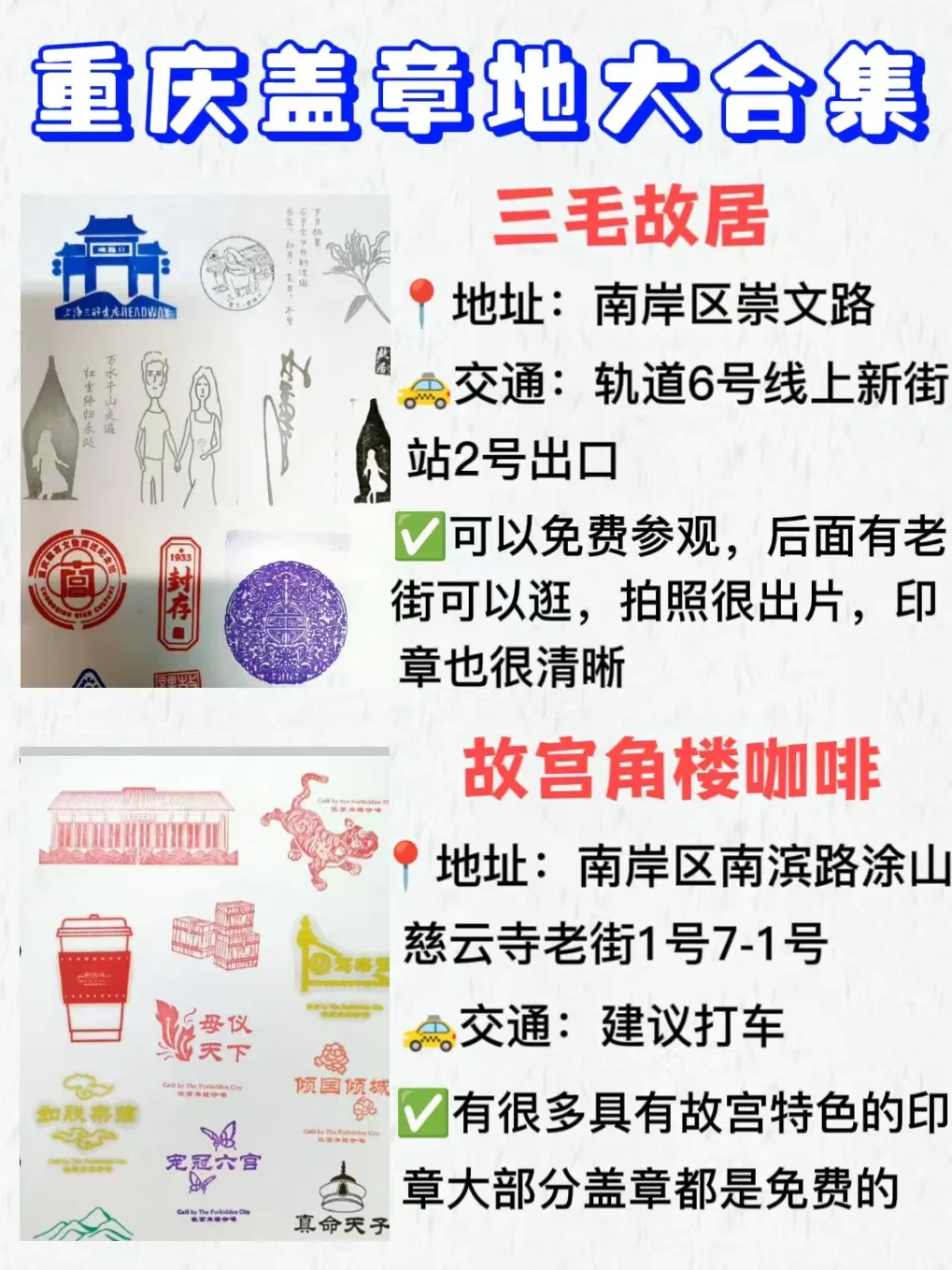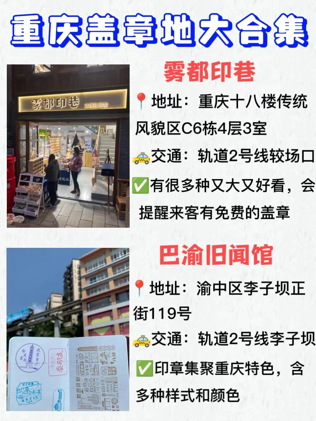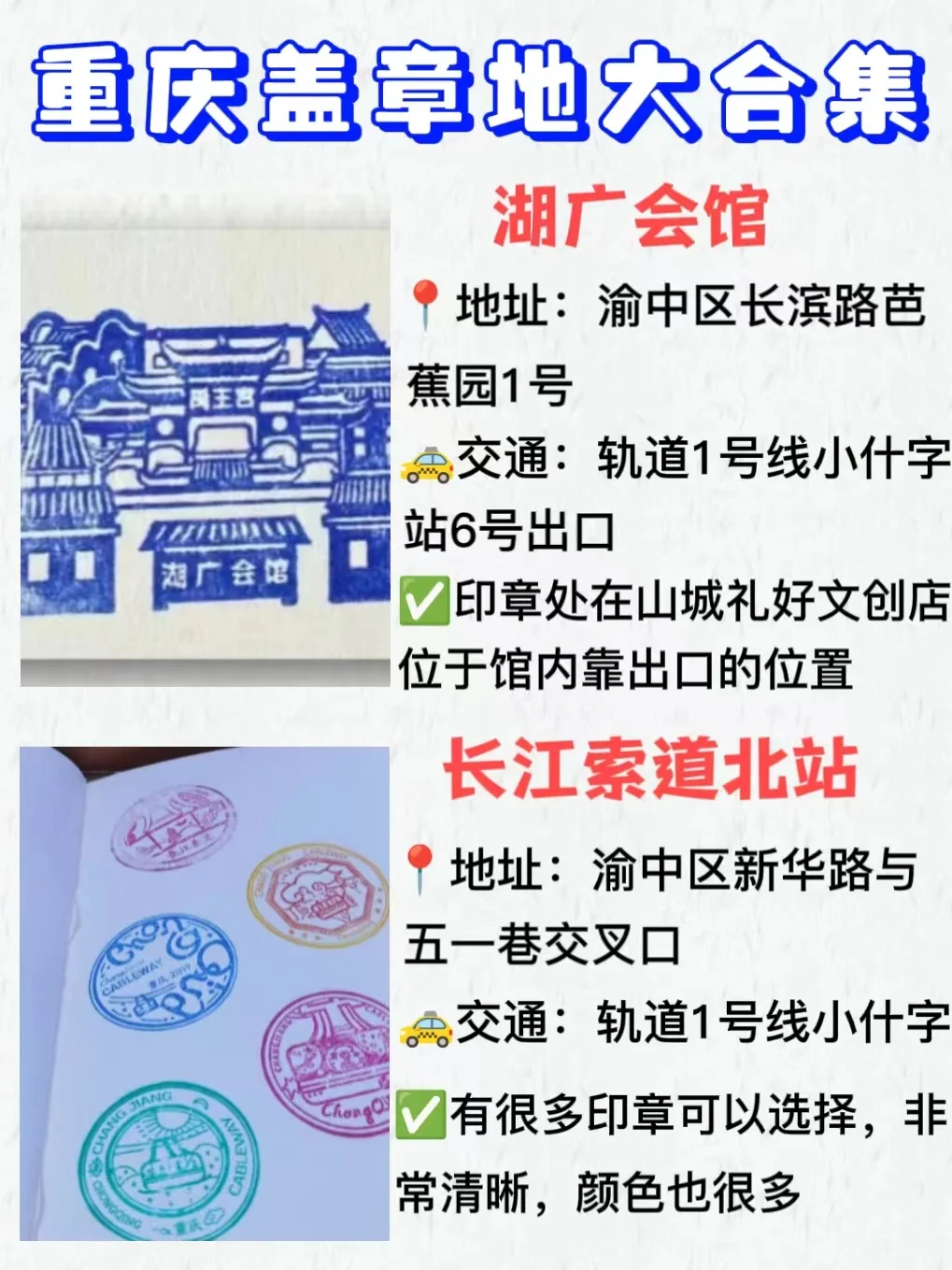 来重庆旅游 ,一定要盖章留下纪念才不虚此行哦~这里整理了一下盖章打卡地合集!喜欢的姐妹快快收藏吧~