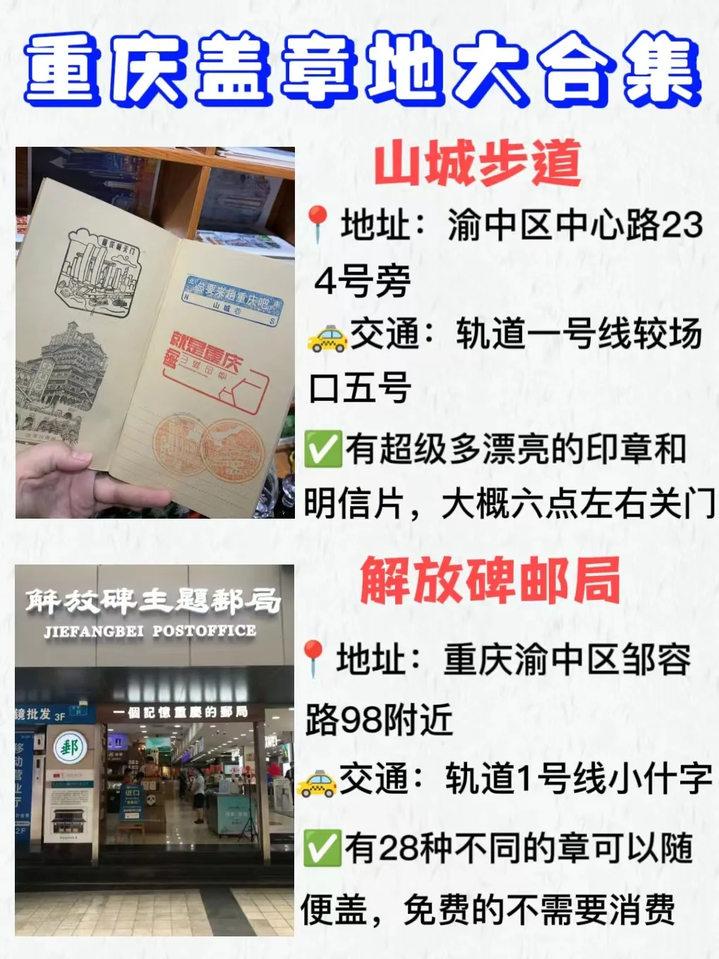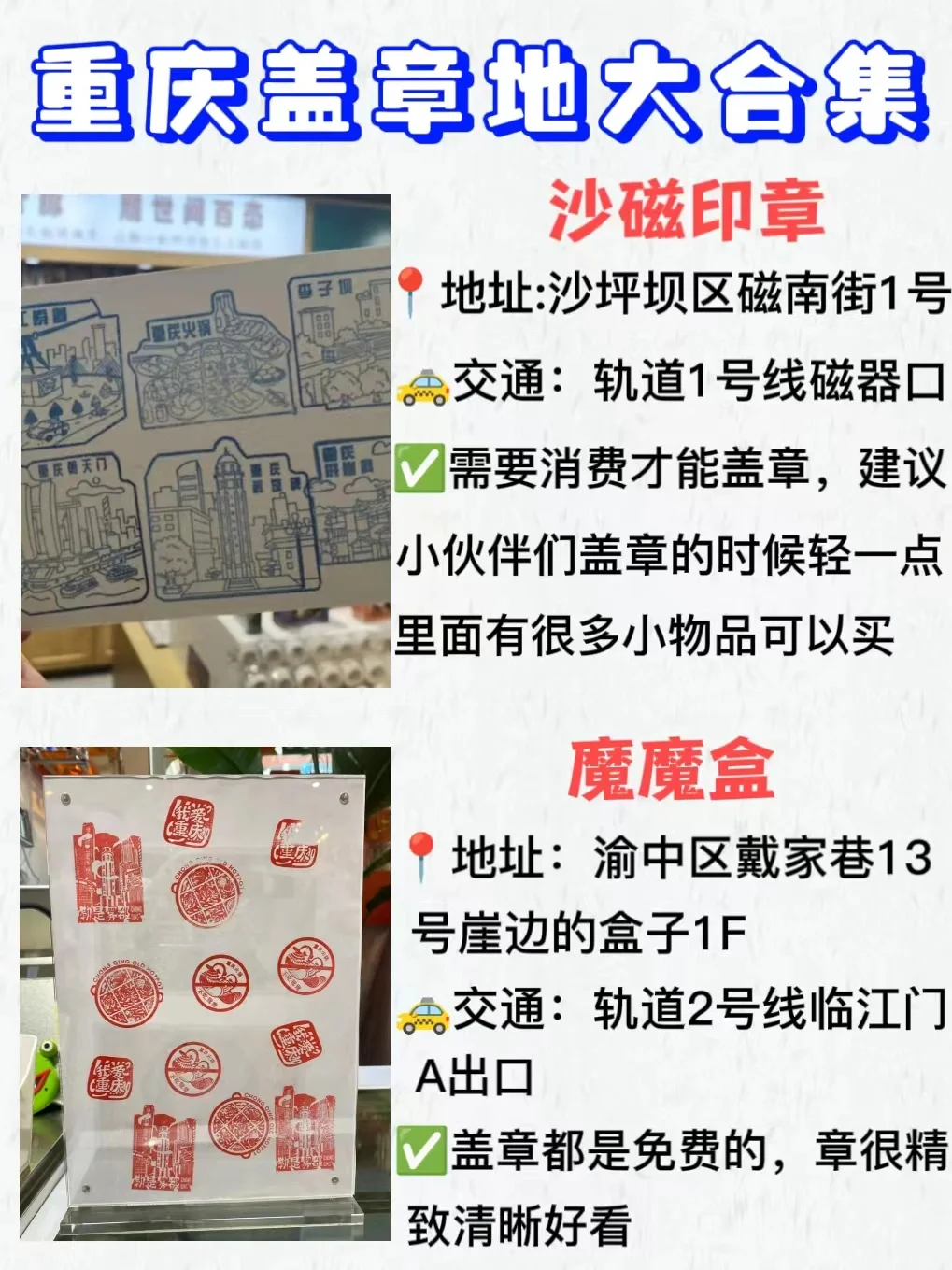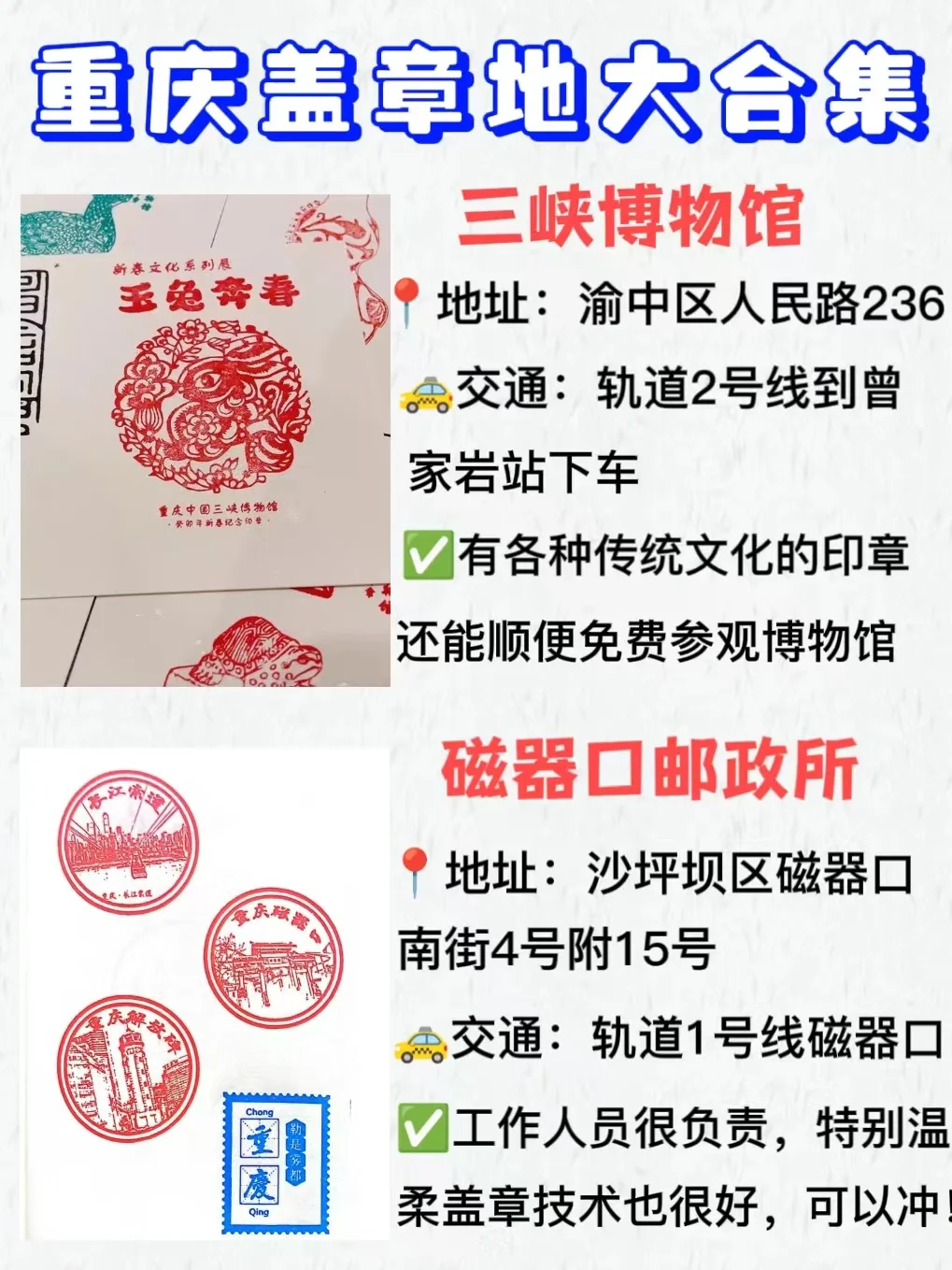 来重庆旅游 ,一定要盖章留下纪念才不虚此行哦~这里整理了一下盖章打卡地合集!喜欢的姐妹快快收藏吧~
