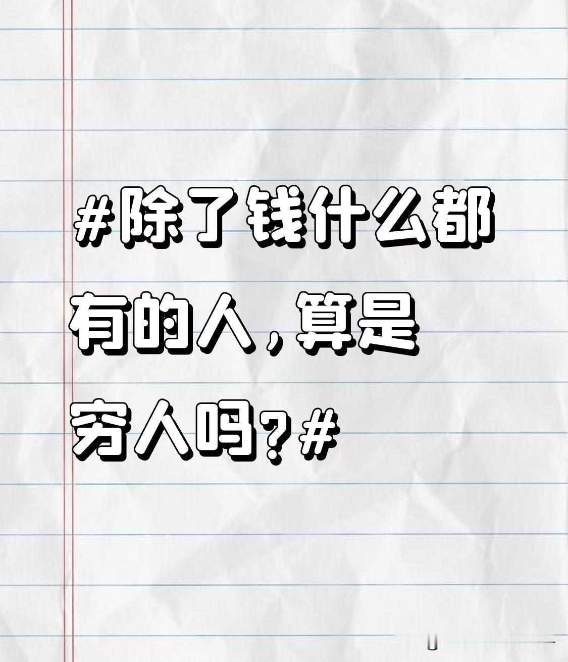 除了钱什么都有的人,算是穷人吗? 除了钱什么都有的人,算不算穷人还真不好说。 从